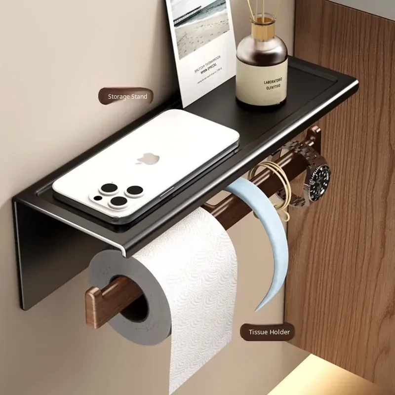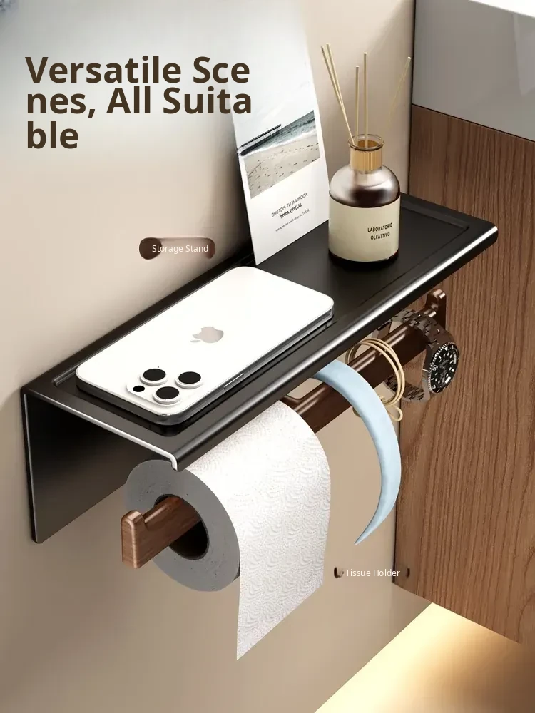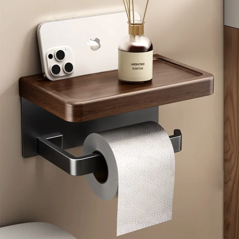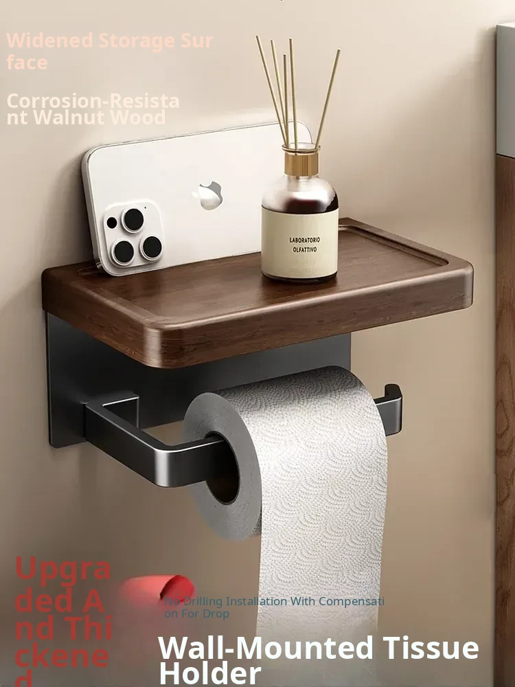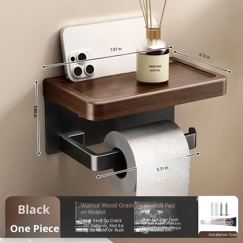 [Walnut Grain-Black] Roll Paper Mobile Phone Holder-1 Pack