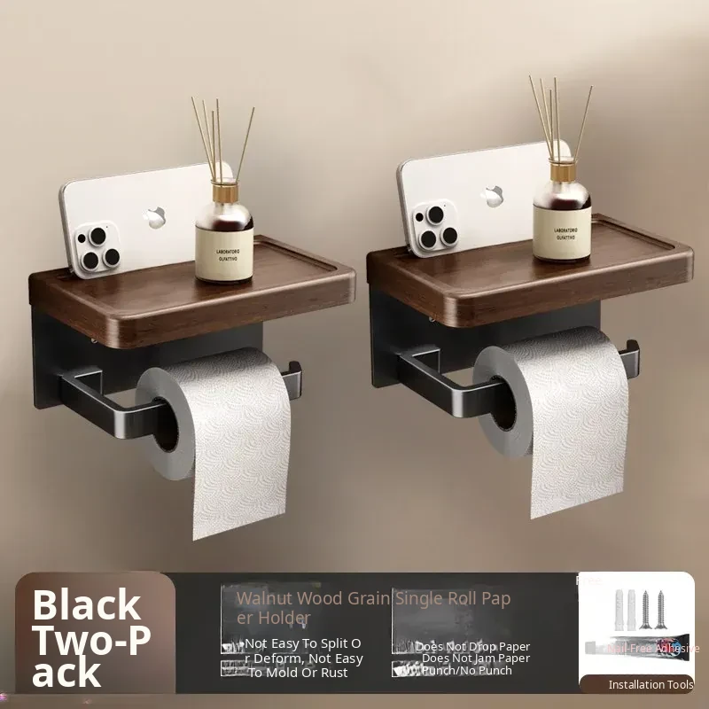 [Walnut Grain-Black] Roll Paper Mobile Phone Holder-2 Pack