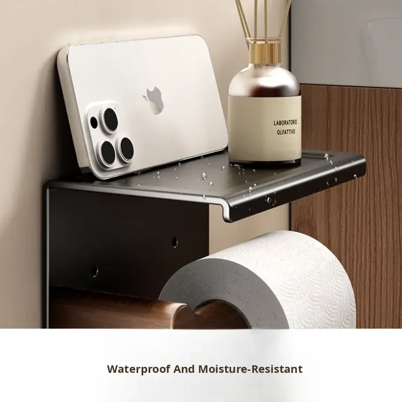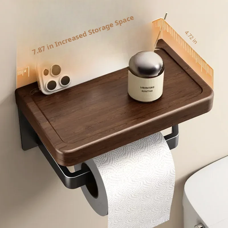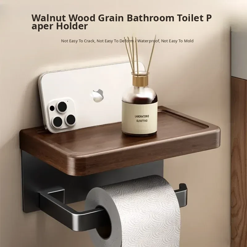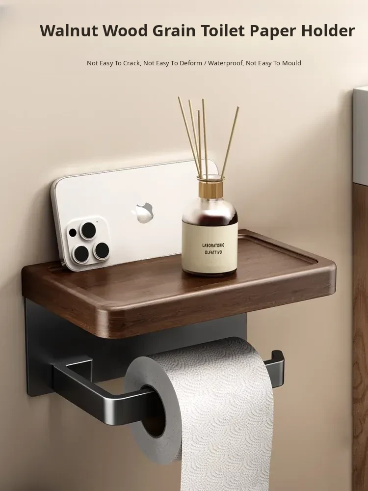Walnut Grain Toilet Paper Holder - No Drilling Required, Stylish Bathroom Tissue Box for Sink Storage, Convenient Toilet Roll Organizer