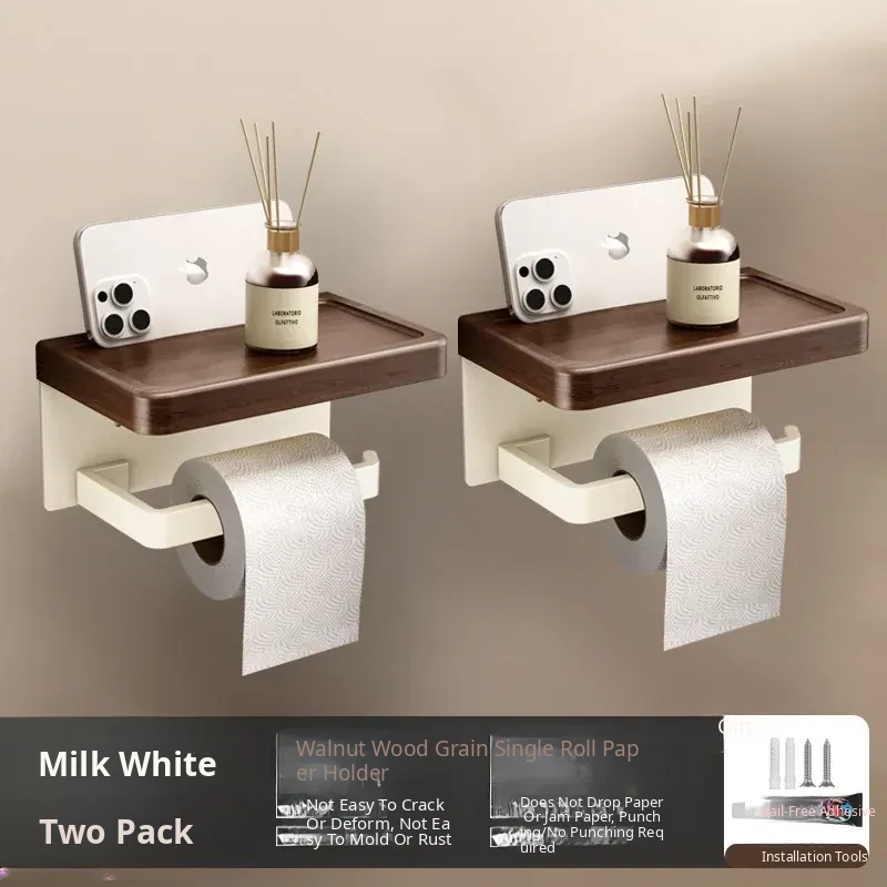 [Walnut Grain-Milk White] Roll Paper Mobile Phone Holder-2 Pack