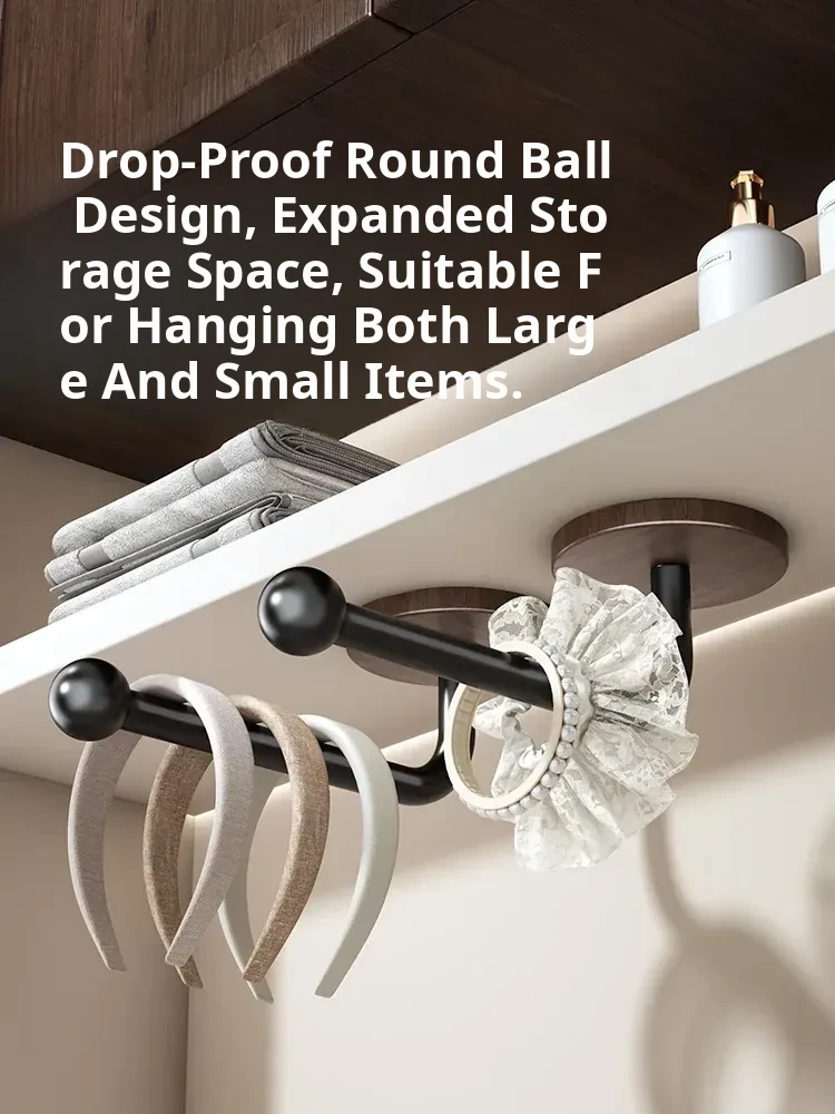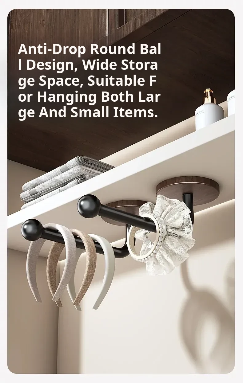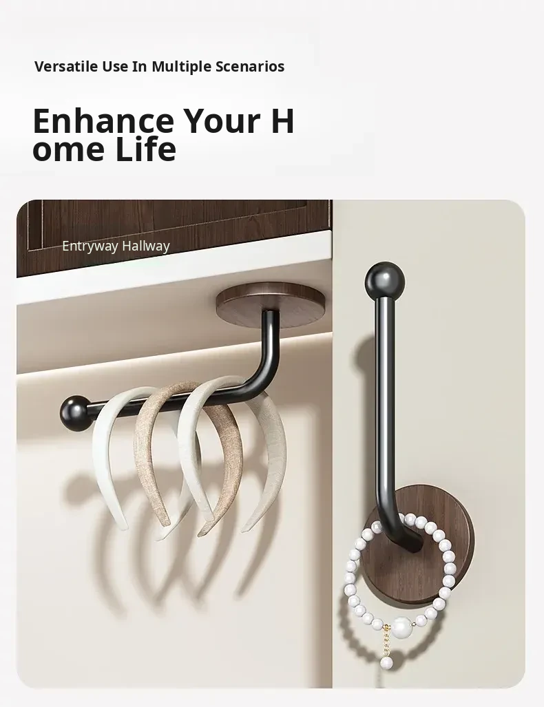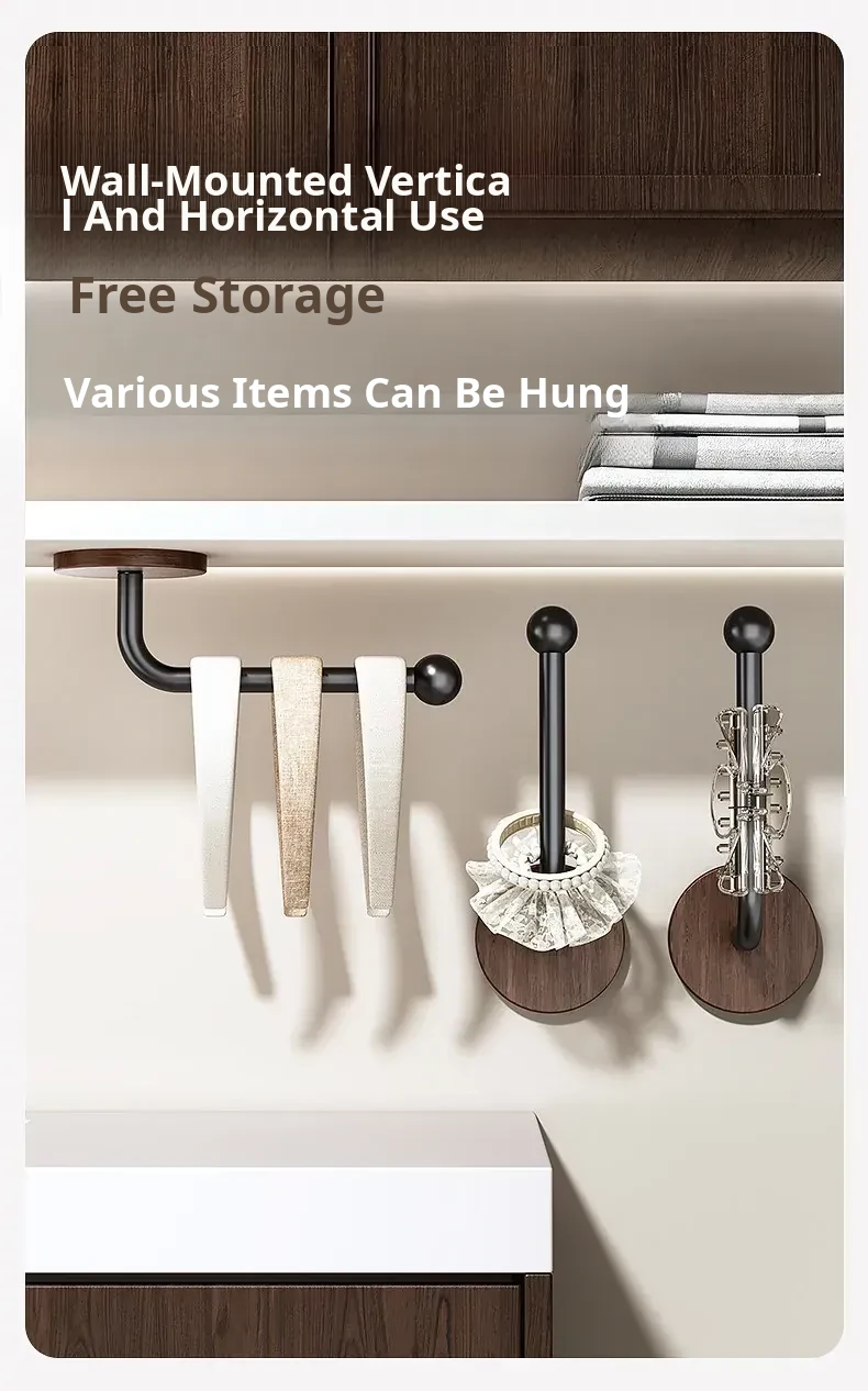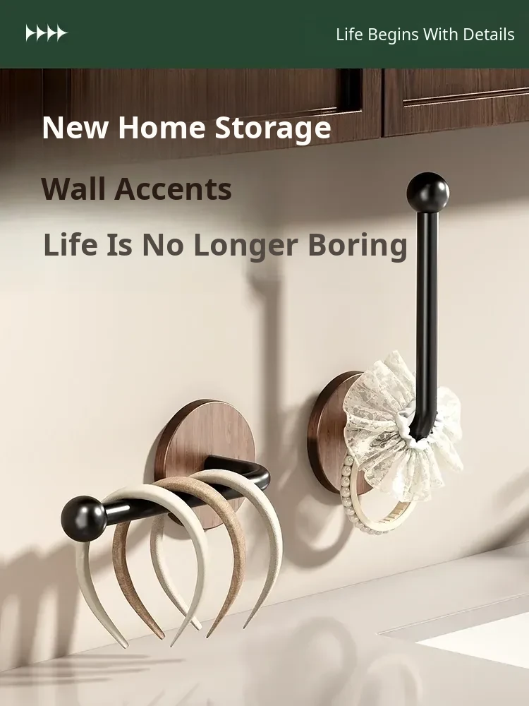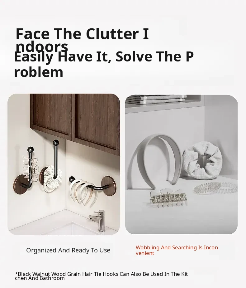 Walnut Wood Grain Hair Accessories Organizer - Wall-Mounted No-Drill Hook for Hair Bands, Combs, and Headbands - Stylish and Functional Bathroom Storage Solution