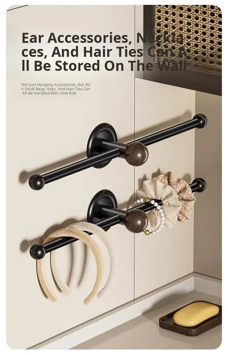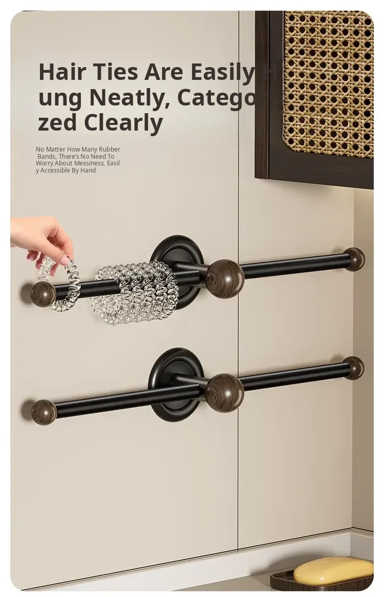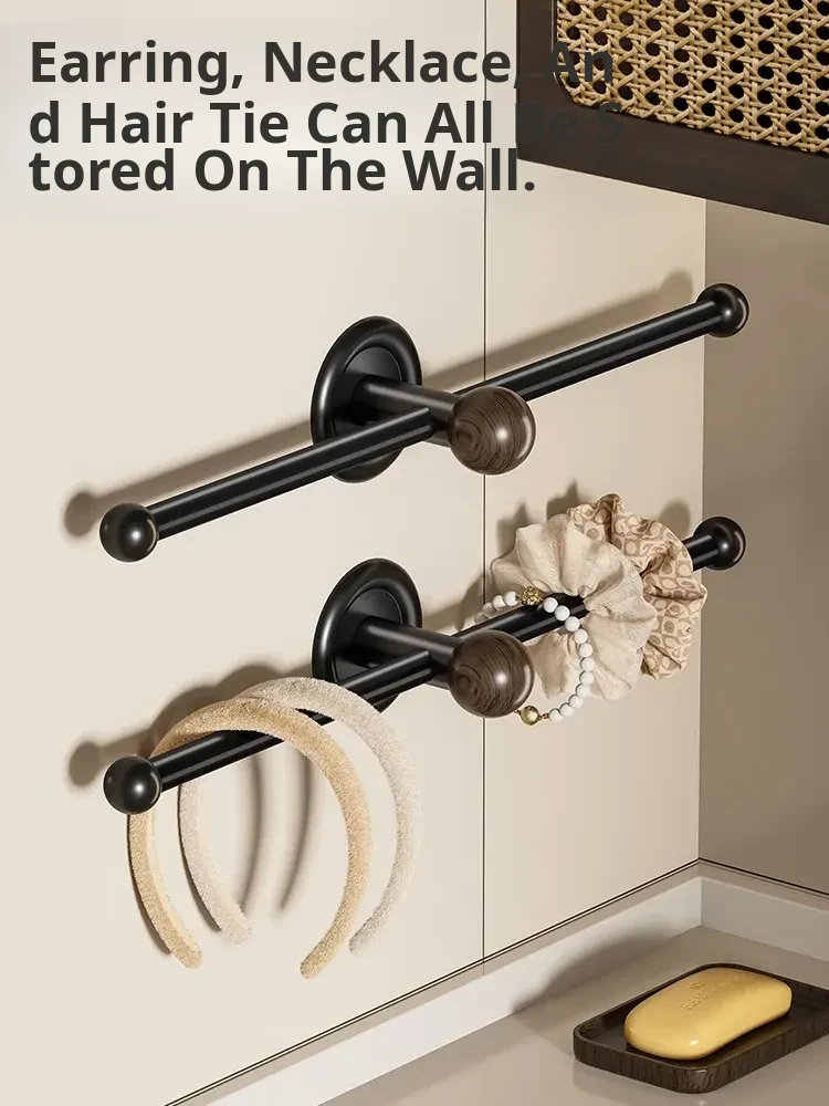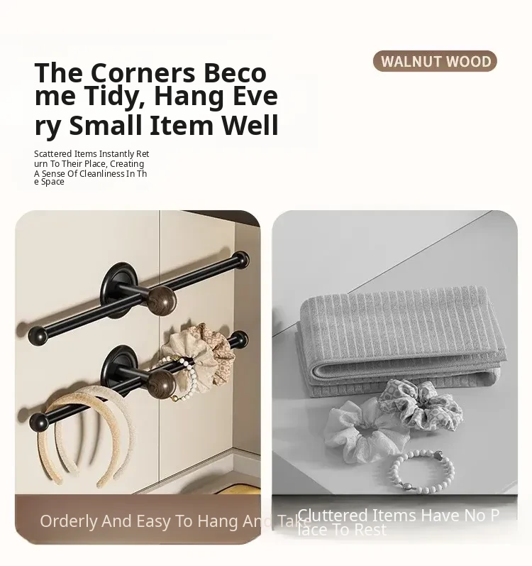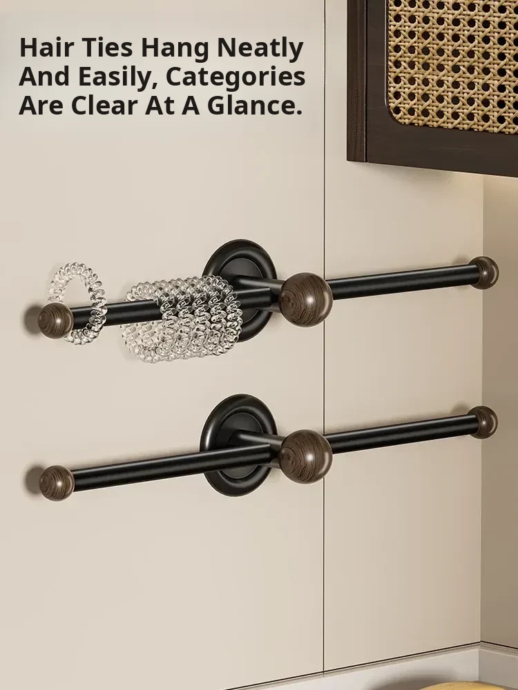 Walnut Wood Wall-Mounted Hair Accessories Organizer - No Drill Headband and Hair Tie Holder, Perfect for Bathroom Use, Stylish and Functional Hook for Your Hair Essentials!