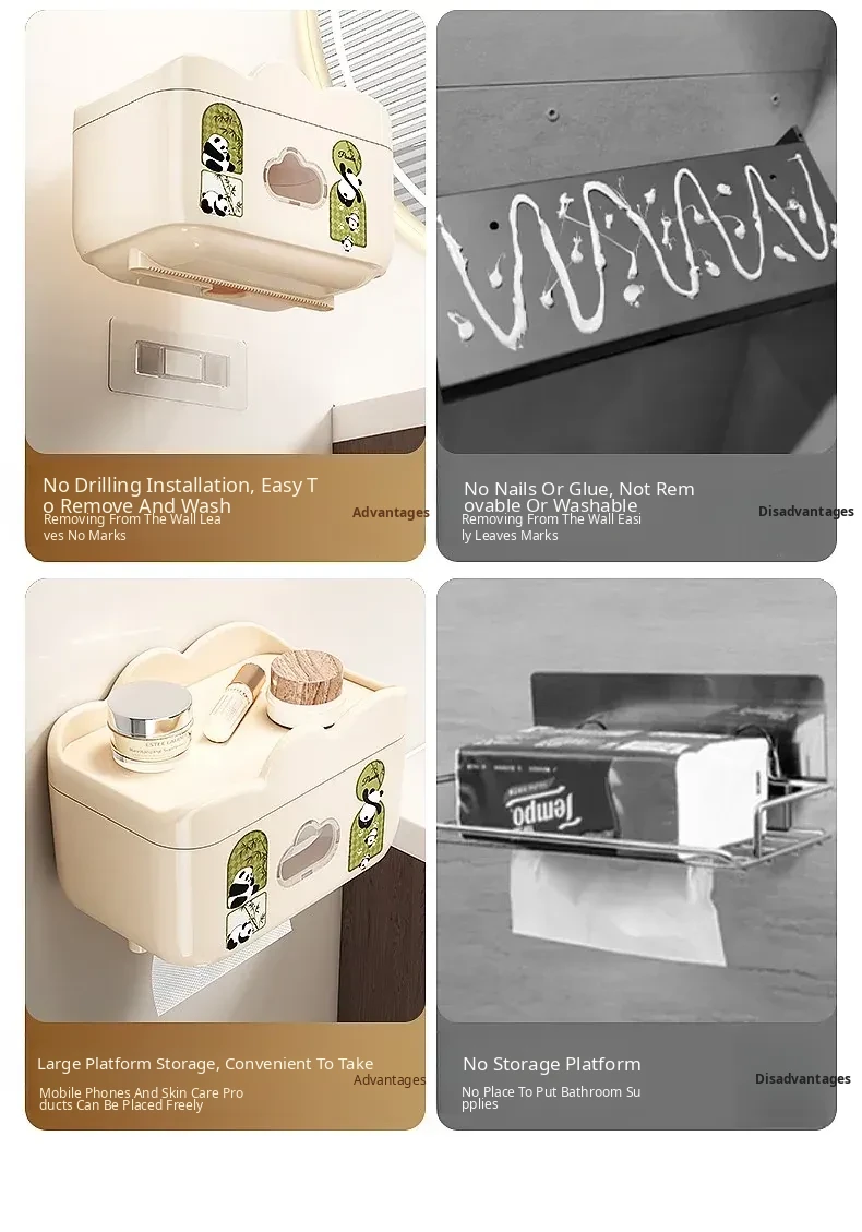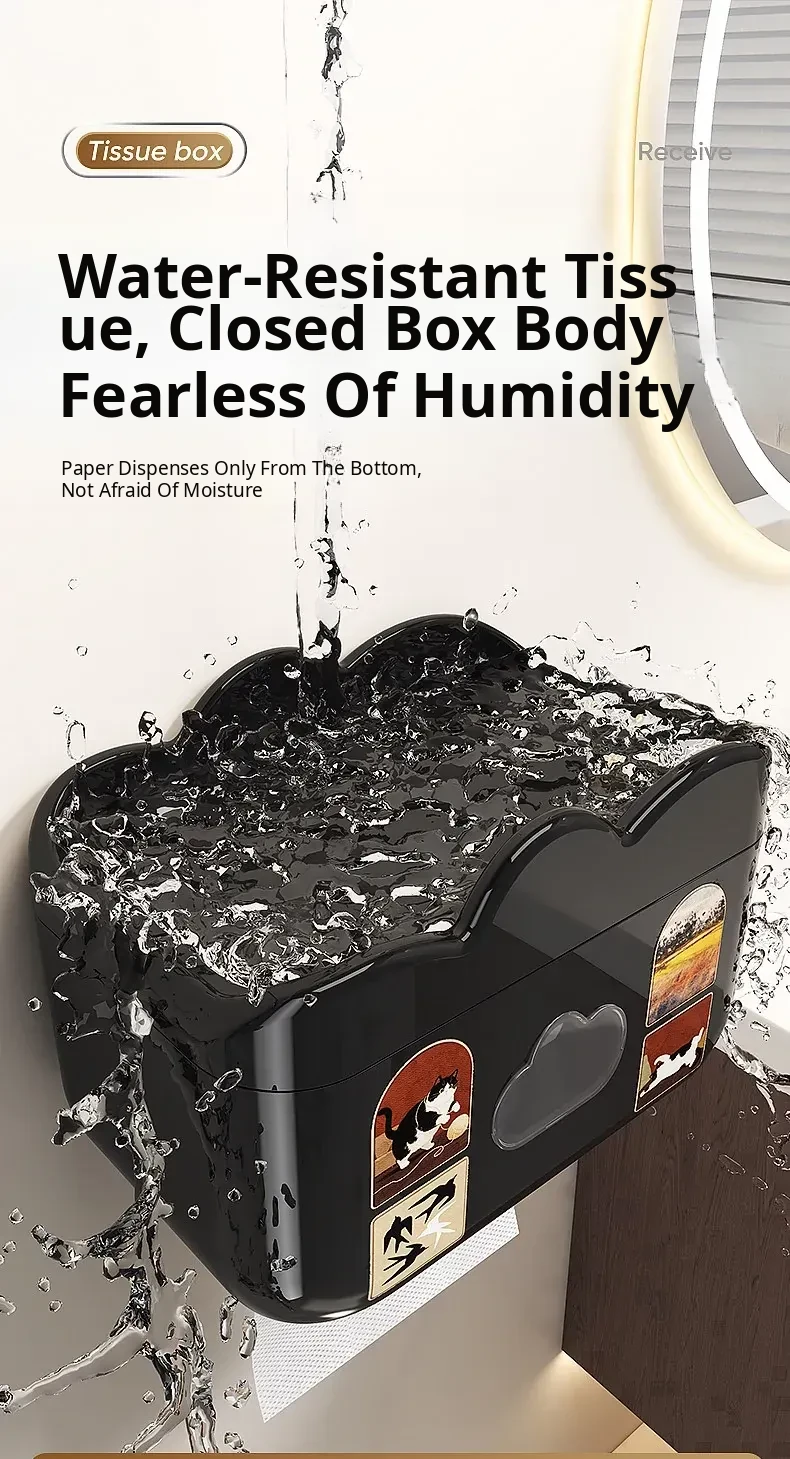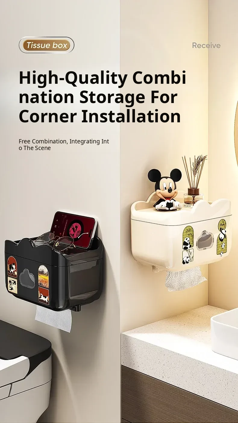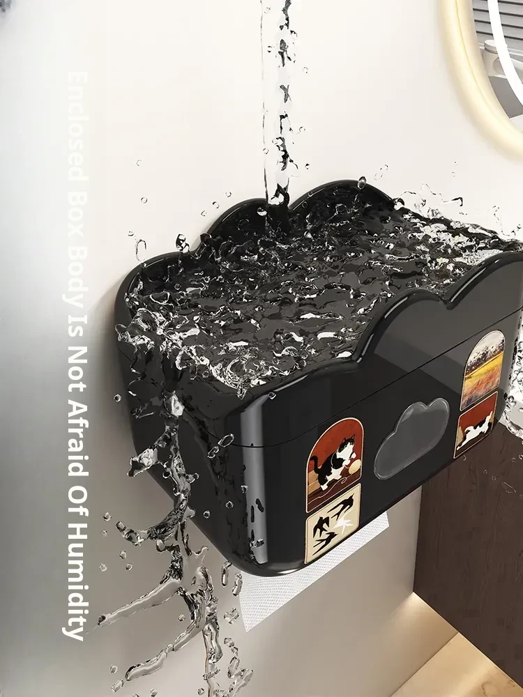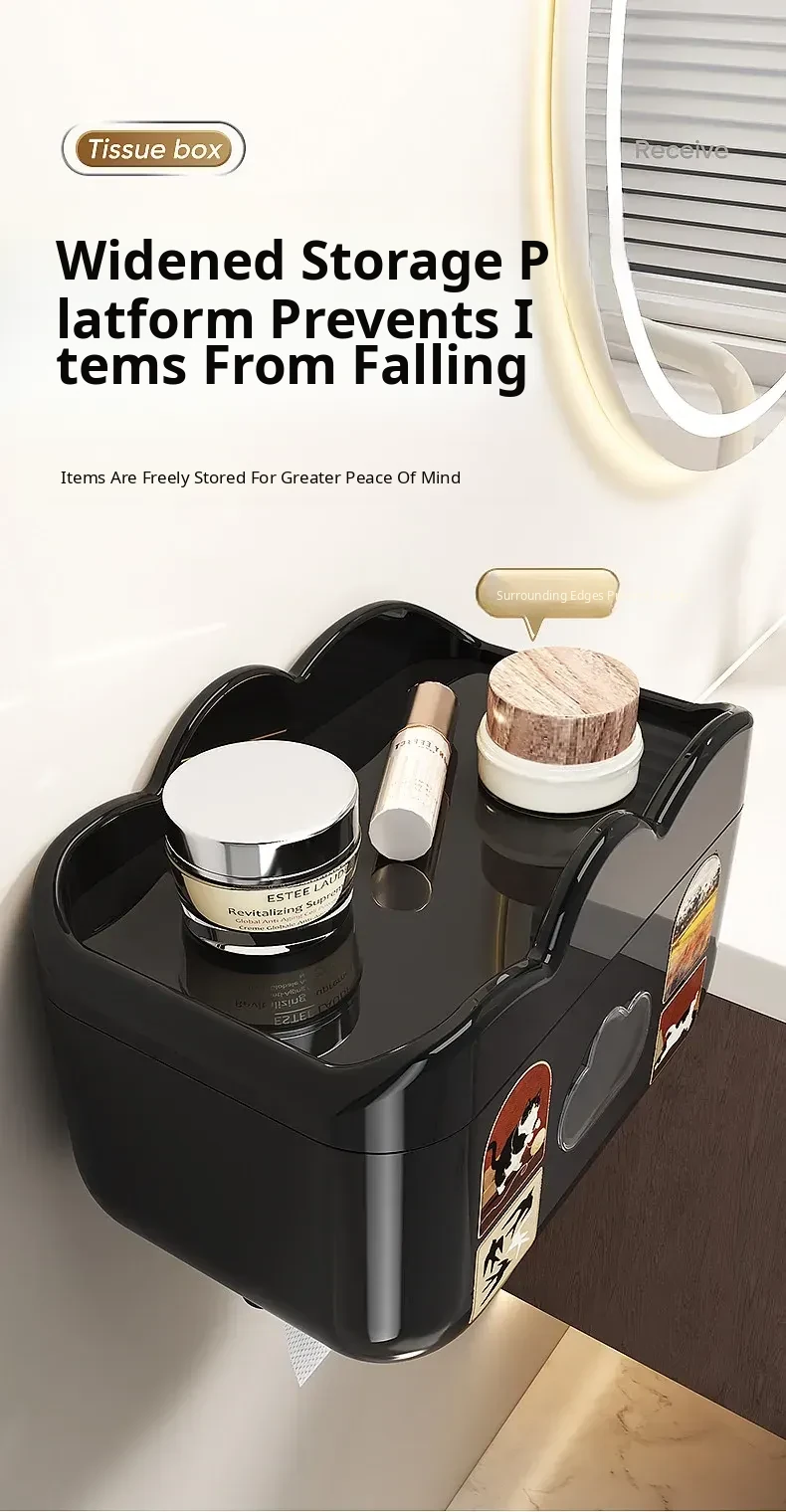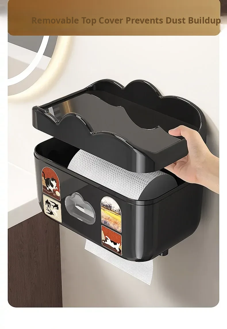 Waterproof Wall-Mounted Toilet Paper Holder - No Drill Tissue Box for Bathroom, Convenient Storage for Toilet Paper Rolls and Wipes, Stylish and Practical Design