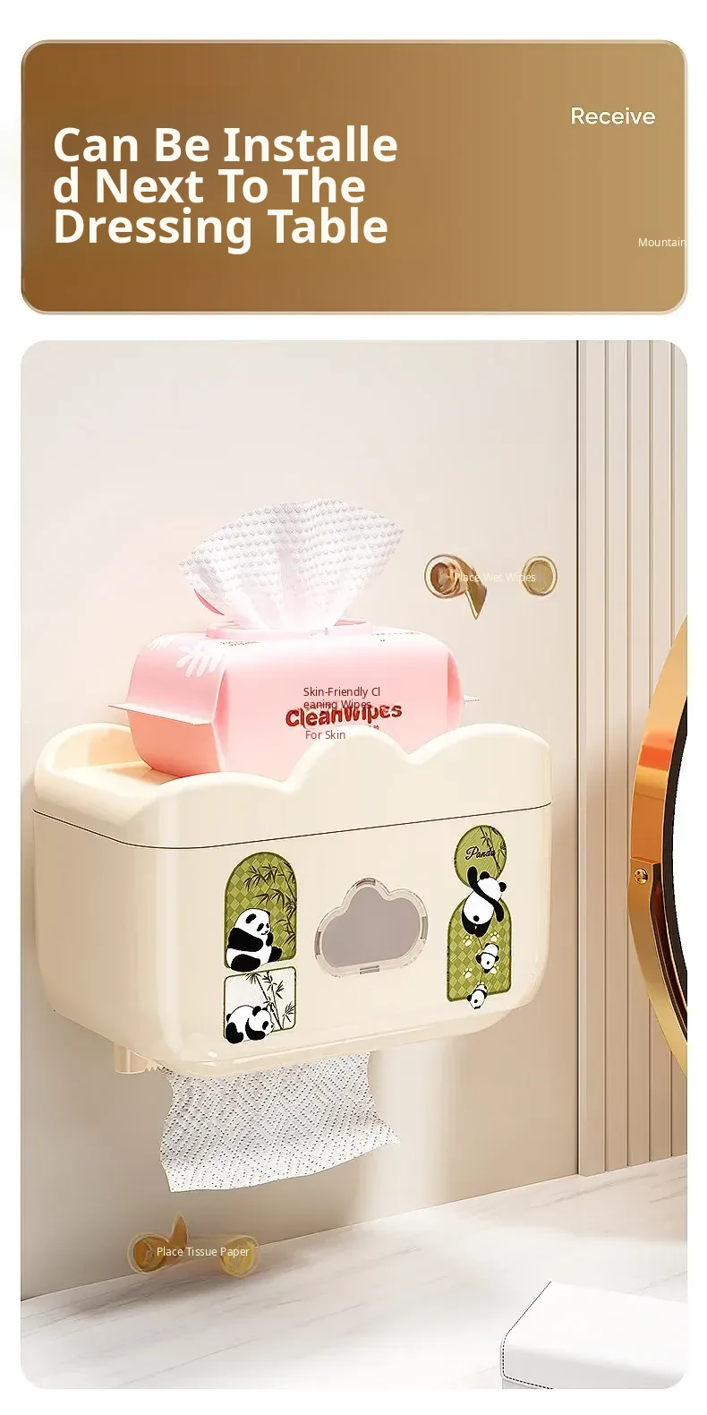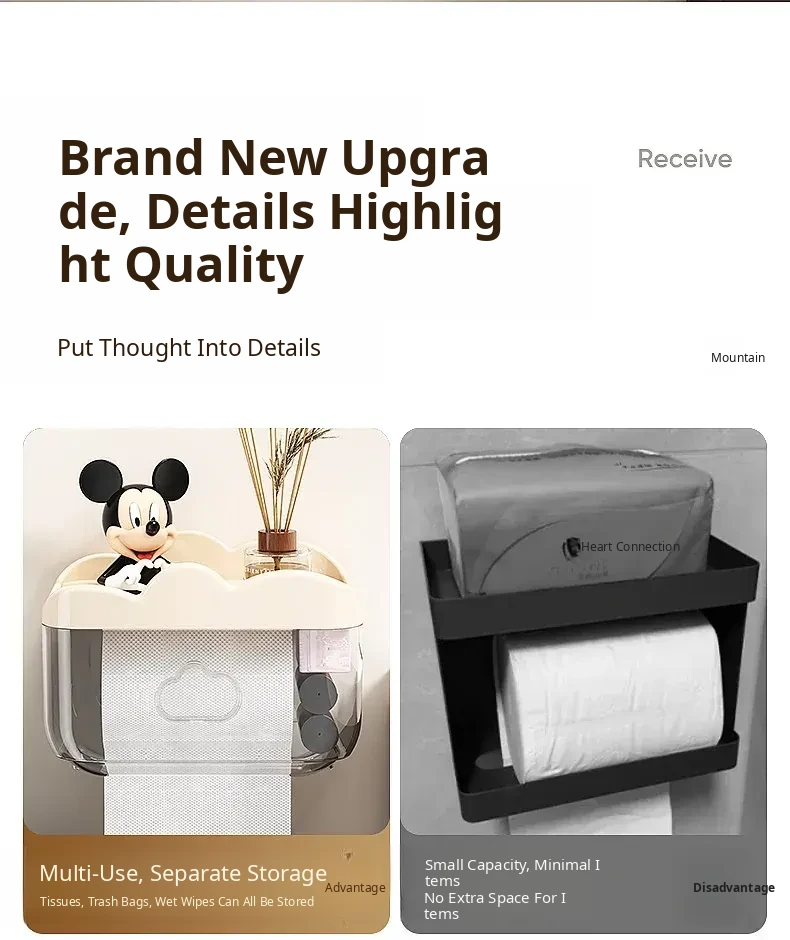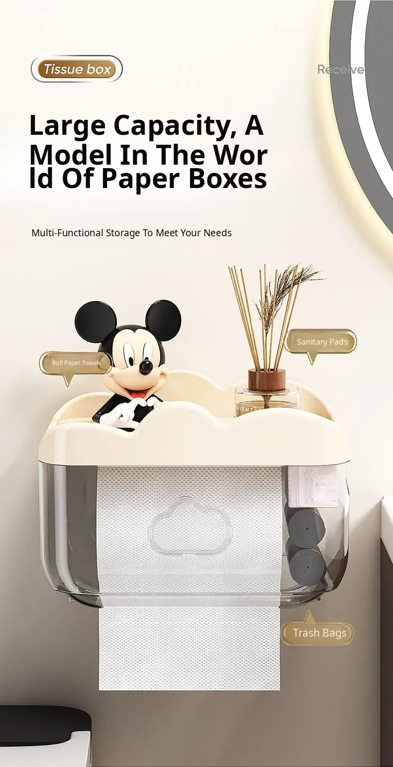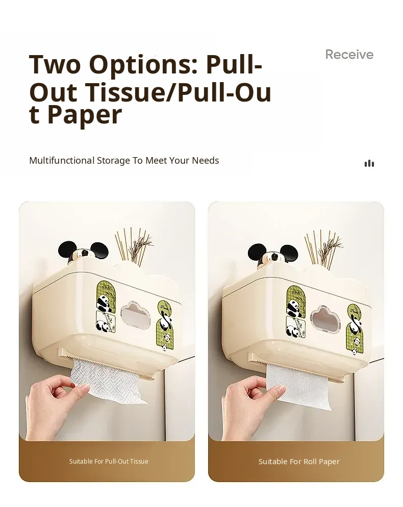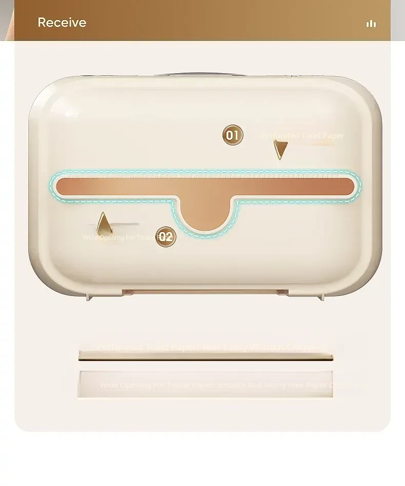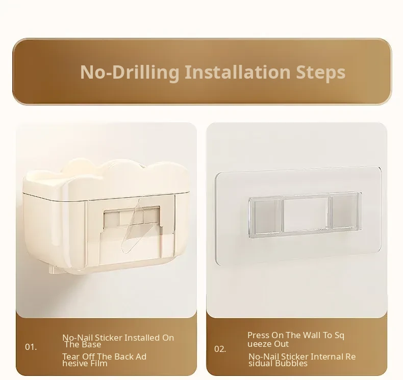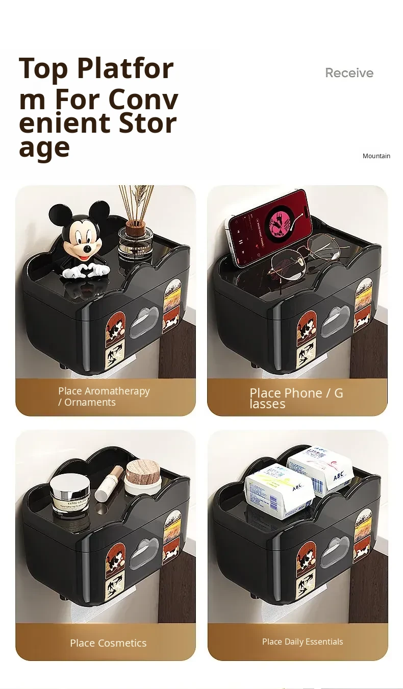 Waterproof Wall-Mounted Toilet Paper Holder - No Drill Tissue Box for Bathroom, Convenient Storage for Toilet Paper Rolls and Wipes, Stylish and Practical Design