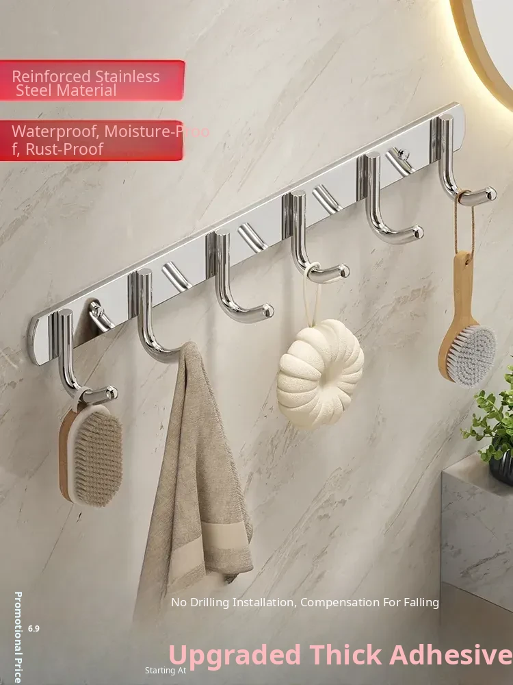 Heavy-Duty Stainless Steel Adhesive Hooks for Bathroom & Kitchen - No Drilling, No Damage, Strong Load-Bearing, Invisible Wall-Mounted Hangers for Home Use