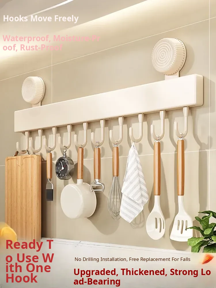No-Drill Kitchen Hook Rack - Multi-functional Wall-Mounted Utensil Organizer for Spoons and Spatulas - Space-Saving Storage Solution for Your Kitchen!