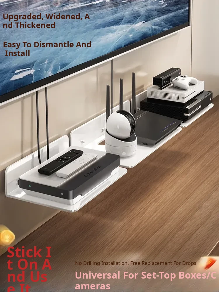 Wall-Mounted Router Shelf - No Drilling Required! Perfect for WiFi Modems, Set-Top Boxes & Home Power Strip Organization. Keep Your Space Tidy and Functional!