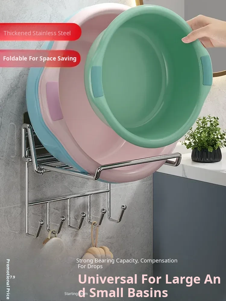 Wall-Mounted Sink Hook - No Drill Bathroom Storage Solution for Basins, Bathtubs, and Washrooms - Space-Saving Hanging Basin Organizer