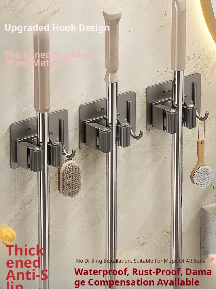 Wall-Mounted Mop Holder - No Drilling Required! Convenient Clip for Brooms and Mops, Perfect for Bathroom Storage. Keep Your Space Organized with This Adhesive Hook and Fastener Solution!