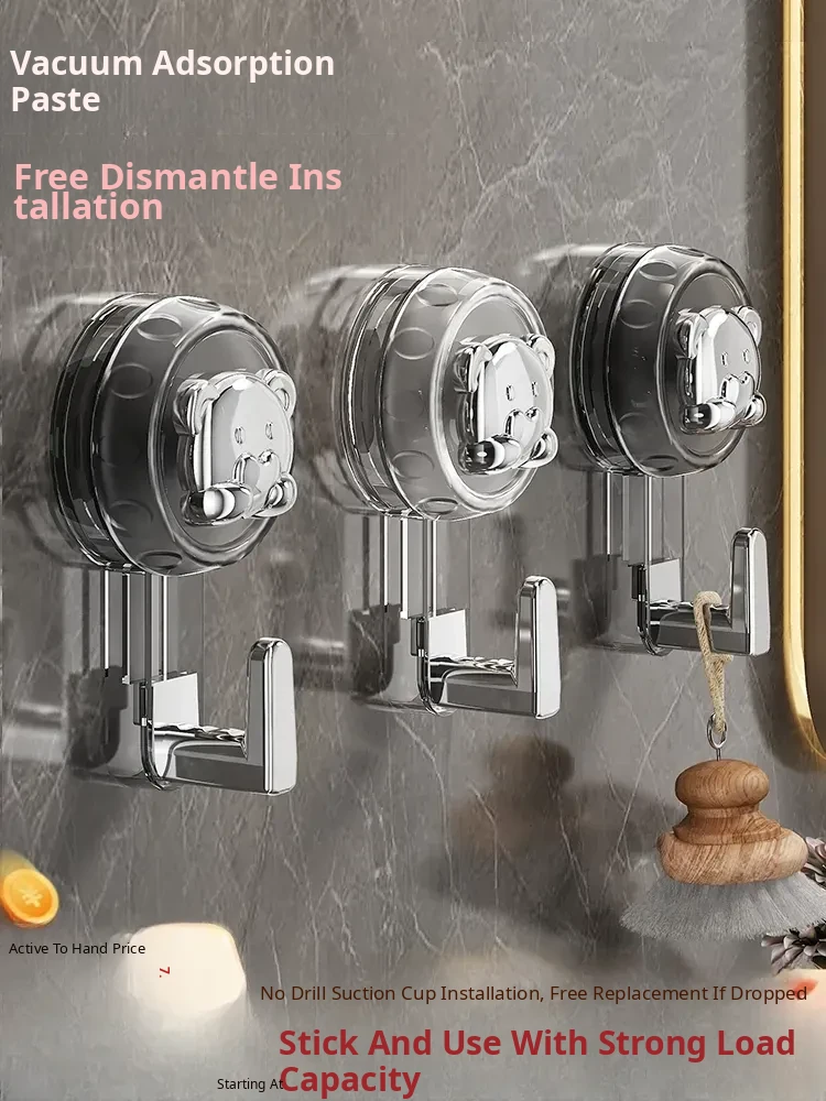 Powerful Adhesive Suction Cup Door Hooks - No Drilling Required, Heavy-Duty Wall-Mounted Hangers for Clothes and Bathroom Storage Solutions.