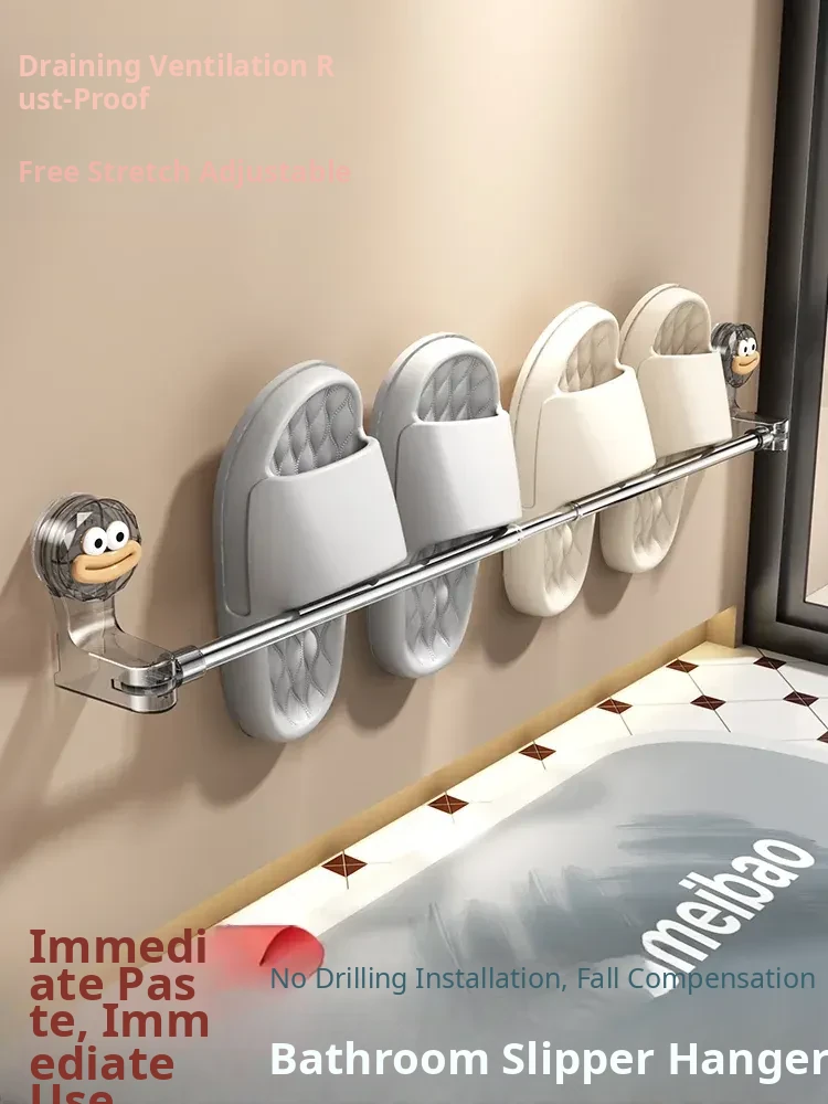 Suction Cup Slipper Rack - No Drilling Needed! Bathroom Storage Solution for Shoes, Waterproof Hanging Organizer for Towels and Slippers, Perfect for Your Toilet and Shower Area!