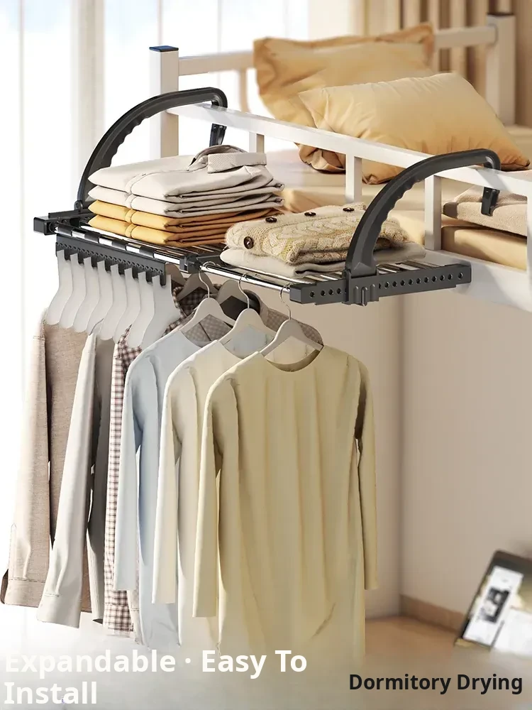 Dorm Room Bedside Clothes Hanger - Perfect for Students! Versatile Clothes Drying Rack for Bedrooms, Bunk Beds, and Balconies - Adjustable and Space-Saving Solution for Hanging and Drying Clothes.