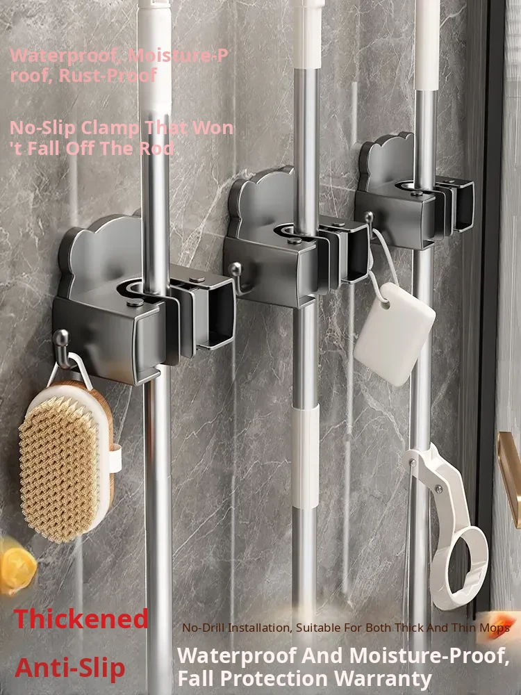 Suction Mop Wall Hook - No Drill Required! Perfect for Bathroom Storage, Organize Brooms and Mops with This Innovative Space-Saving Solution.