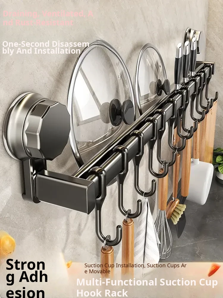 Suction Cup Kitchen Hooks - No Drill Multi-Functional Storage Rack for Pots, Spatulas, Spoons, and Knives - All-in-One Organizer for a Clutter-Free Kitchen!