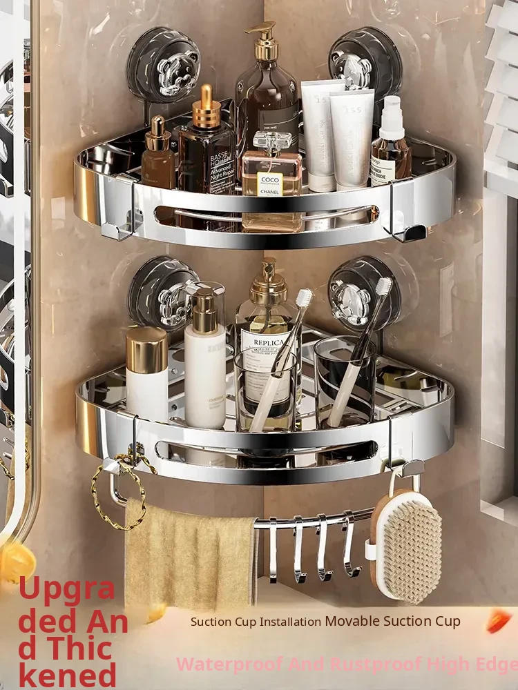 No-Drill Suction Shower Corner Shelf - Wall-Mounted Bathroom Organizer for Toiletries and Accessories, Space-Saving Triangle Rack for Easy Storage in Your Bathroom