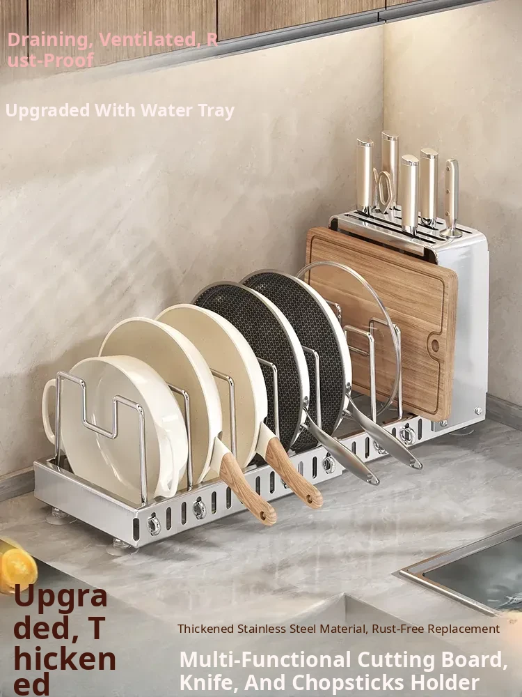 Multi-Functional Kitchen Knife and Utensil Holder - All-in-One Storage Rack for Knives, Cutting Boards, Pots, and Lids - Space-Saving Countertop Organizer