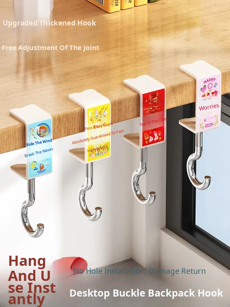 Powerful No-Drill Hook for Backpack - Ideal for Students, Dorms & Offices - Strong Weight Capacity, Perfect for Side of Desks, Keeps Your Space Tidy and Organized!