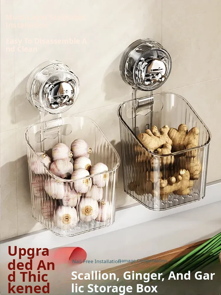 Kitchen Suction Cup Storage Rack - Wall-Mounted Organizer for Scallions, Ginger, and Garlic - No Drilling Required Spice Hanging Basket - The Ultimate Solution for Your Kitchen Storage Needs!