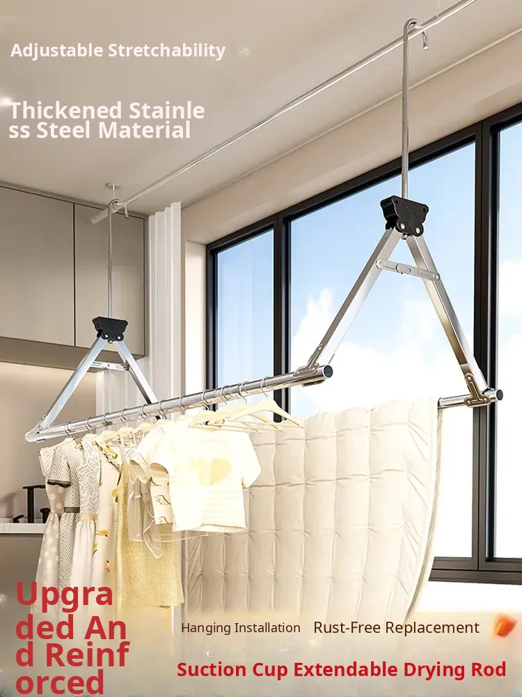 Multipurpose Adjustable Clothes Drying Rack - Space-Saving Folding Laundry Rod for Balcony, Perfect for Hanging Clothes and Drying Comforters!
