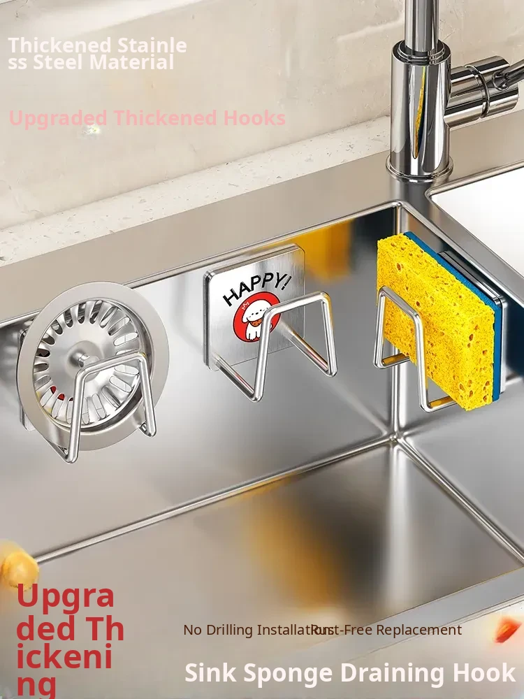 Stainless Steel Sink Sponge Drain Hook - No Drill Pot Lid Storage Rack with Strong Adhesive for Kitchen - Perfect for Organizing Steel Wool and Cleaning Supplies!