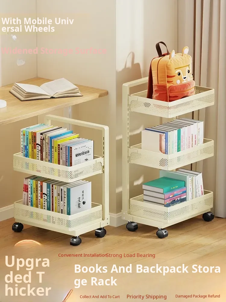 Portable Multi-Layer Bookshelf Trolley - Mobile Storage Rack for Books, Perfect Under-Desk Organizer for Students' Backpacks and Supplies