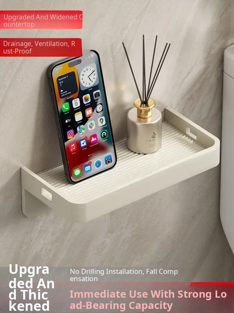 Wall-Mounted Bathroom Storage Shelf - No Drilling Required, Perfect for Toilets, Bedrooms, and Dorms - Convenient Mobile Phone Holder and Wall Organizer for Space-Saving Solutions