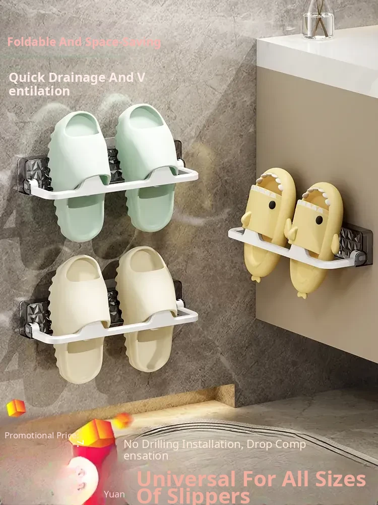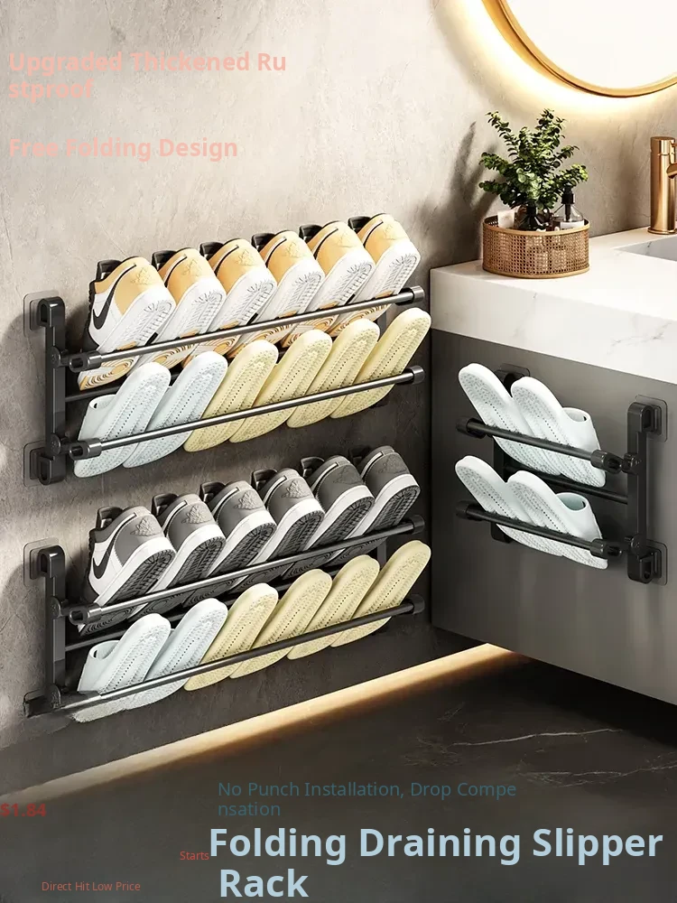 No-Drill Bathroom Slipper Rack - Wall-Mounted Storage Organizer for Toiletries and Shoes, Perfect for Space-Saving in Your Bathroom with Drainage Design