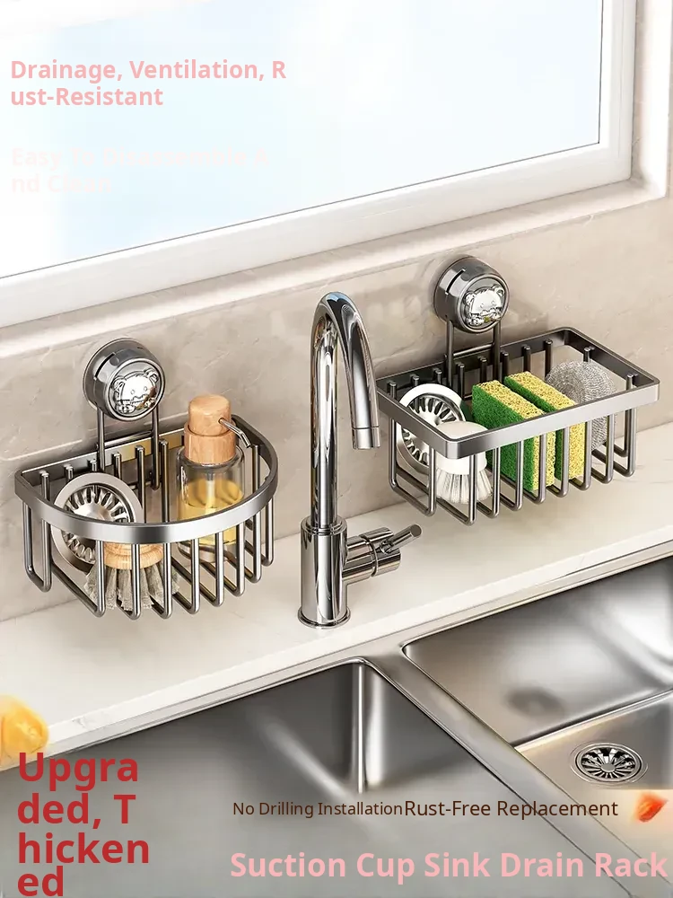 Suction Cup Kitchen Sink Organizer - No Drill Hanging Rack for Dish Towels and Sponges, Effortless Water Drainage, Space-Saving Solution for Your Kitchen