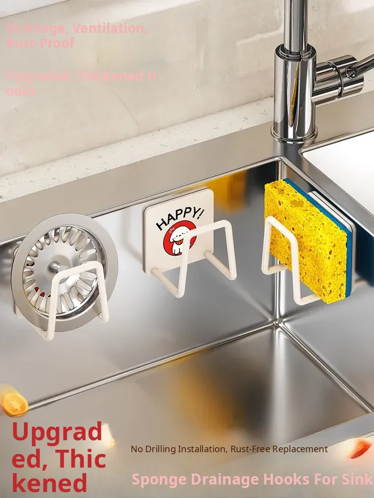 Kitchen Sink Sponge Drain Hook - No Drill Wall-Mounted Organizer for Dishcloths, Steel Wool Balls, and Pot Lids - Space-Saving Storage Solution for a Tidy Kitchen