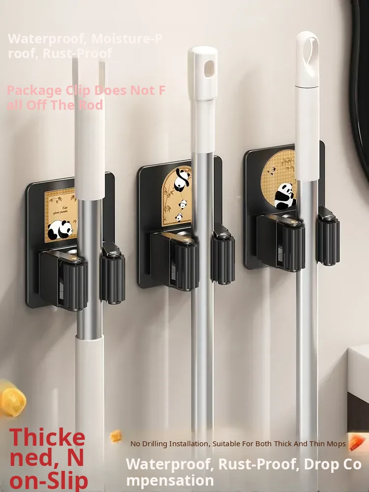 Vintage-Style Wall-Mounted Mop Holder - No Drill Bathroom Hook for Effortless Mop and Broom Storage - Space-Saving Cleaning Tool Organizer