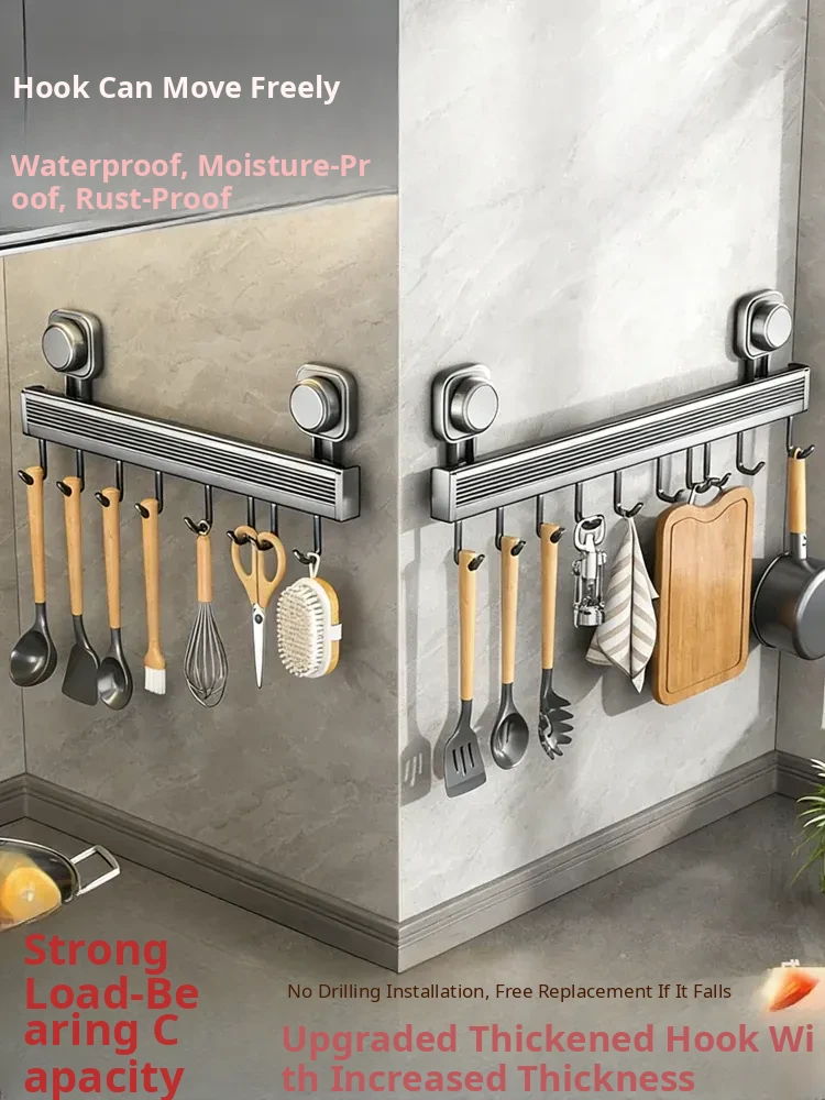 Suction Cup Kitchen Hook Rack - No Drill Wall-Mounted Storage Solution for Multi-Functional Kitchen Utensils, Spoon, and Spatula Organizer