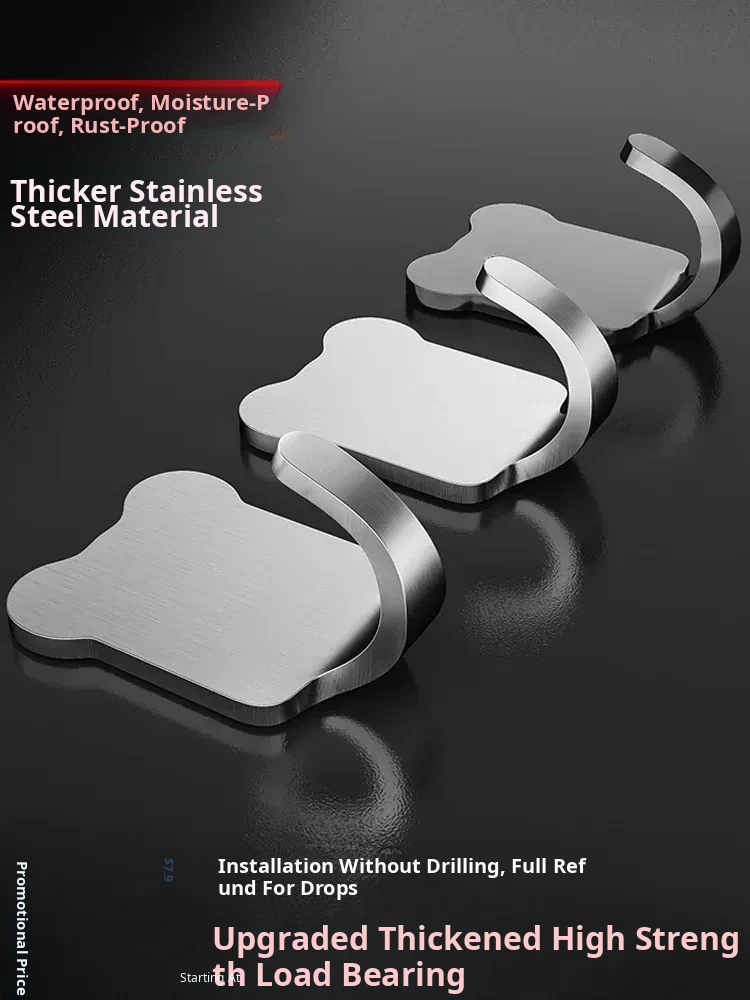 Heavy-Duty Stainless Steel Adhesive Hooks - No Drilling Required! Perfect for Bathroom and Kitchen Use, Wall-Mounted, Damage-Free Hanging Solution for Coats and Accessories.