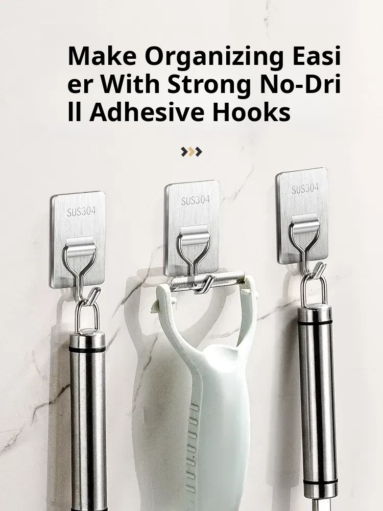 Heavy-Duty Adhesive Wall Hooks - No Drilling, No Damage, Perfect for Kitchen Organization and Storage Solutions, Easy to Stick and Remove, Ideal for a Clutter-Free Home