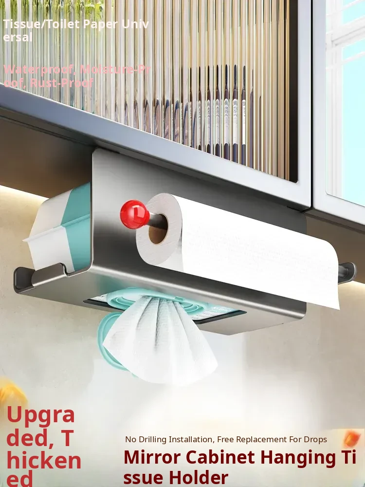 Hanging Tissue Holder for Kitchen and Bathroom – No Drilling Needed, Space-Saving Overhead Storage for Paper Towels, Face Cloths, and More, Perfect for Organizing Your Toilet and Vanity Area
