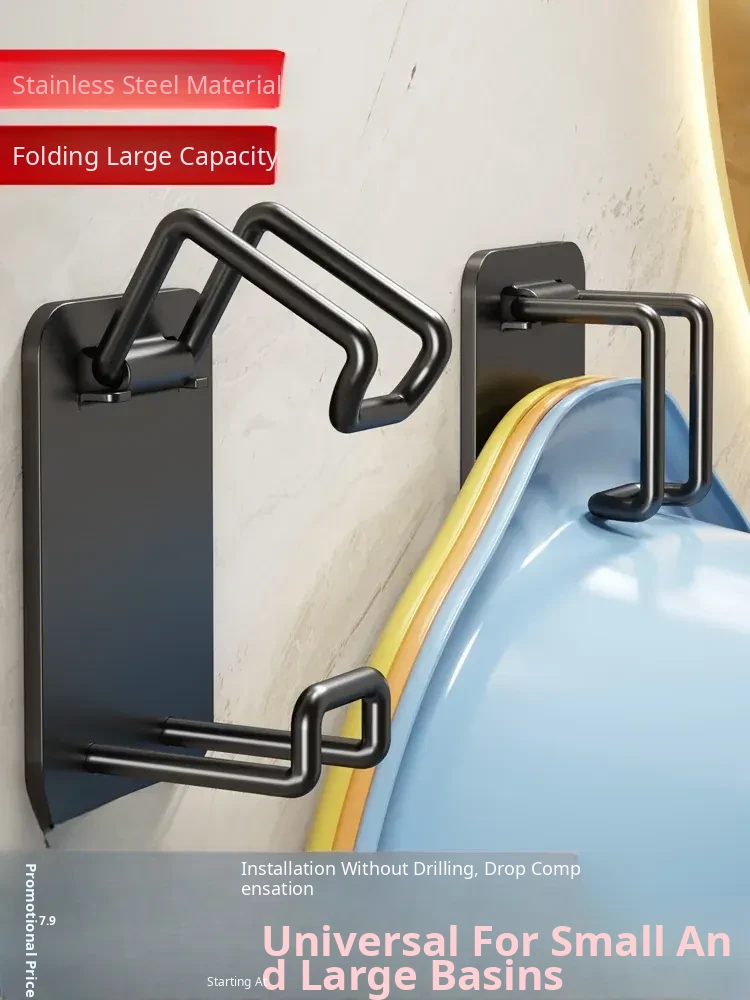 Stainless Steel Basin Hook - No Drill Bathroom Storage Rack for Washbasin and Toilet Essentials - Convenient Hanging Organizer for Your Bathroom Space