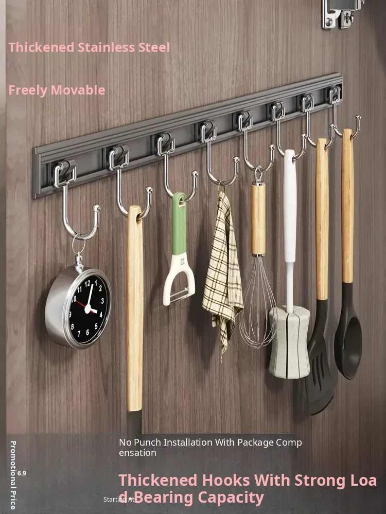 No-Drill Kitchen Hooks Wall-Mounted Storage Rack - Multi-Functional Organizer for Spoons, Spatulas, and Heavy-Duty Adhesive Hooks for Door Back Use