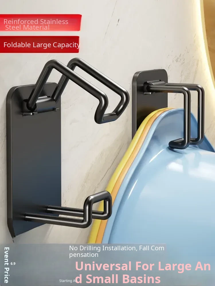 Foldable Basin Storage Rack - No Drilling Required, Space-Saving Hanging Hook for Bathroom, Essential Organizer for Washbasin and Shower Area