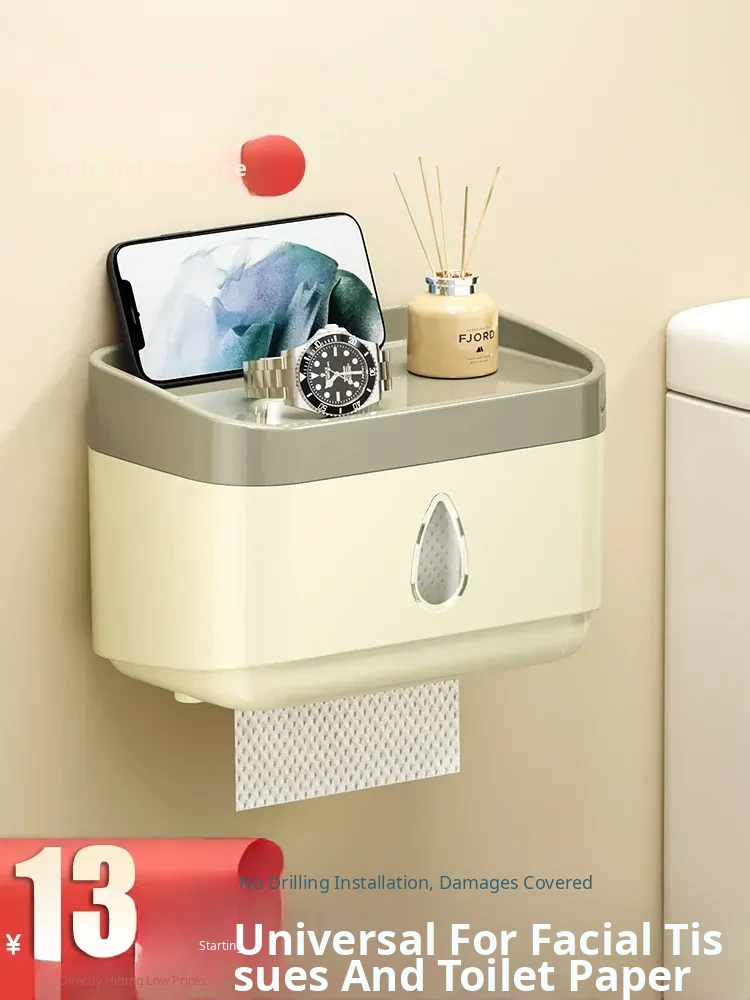 Wall-Mounted Tissue Box for Bathroom - No Drilling Required, Stylish Home Toilet Paper Organizer, Perfect for Storing Roll and Facial Tissues, Space-Saving Design