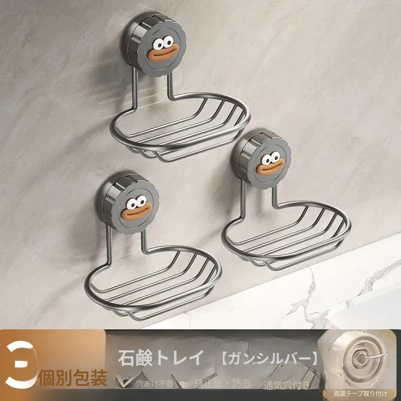ガンメタリック - 吸盤オーバル型石鹸置き【3個入り】