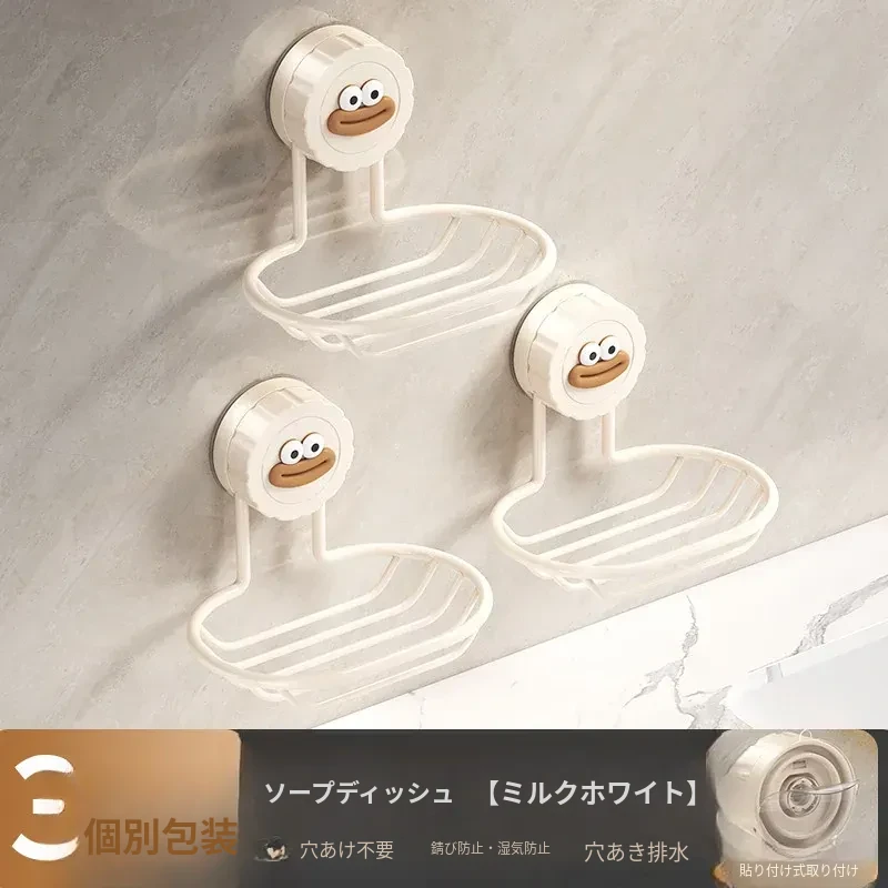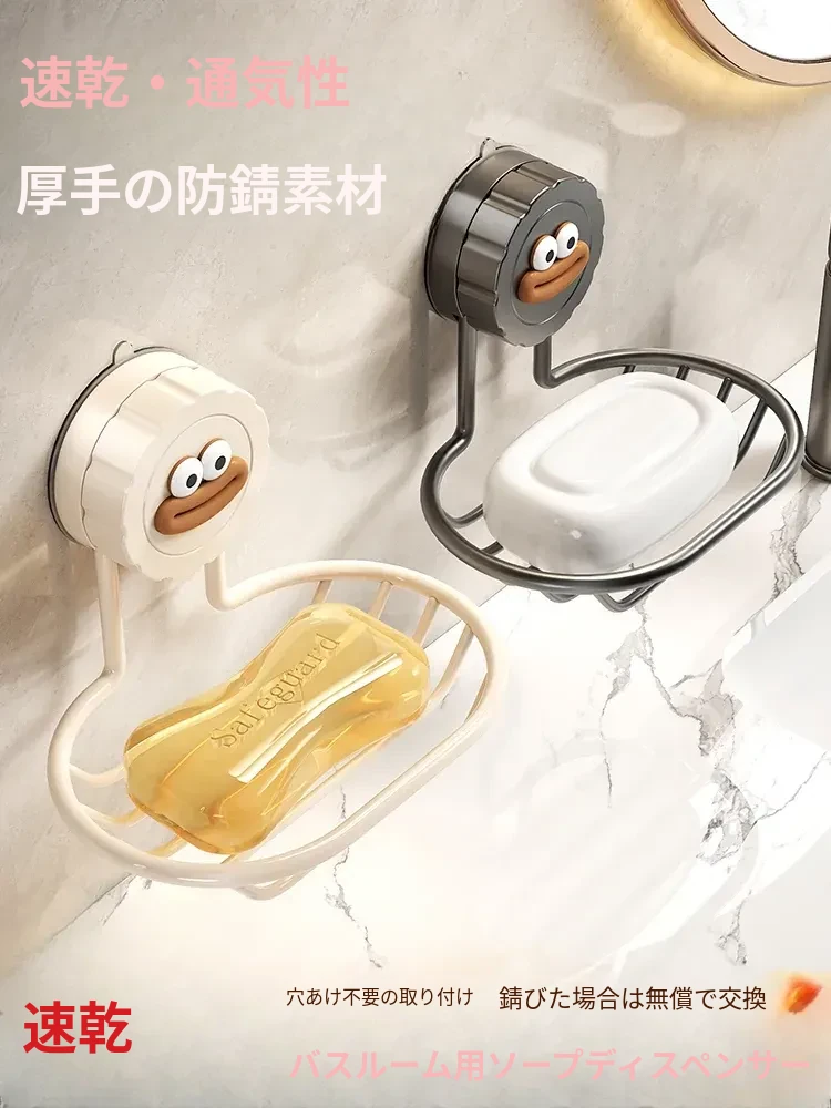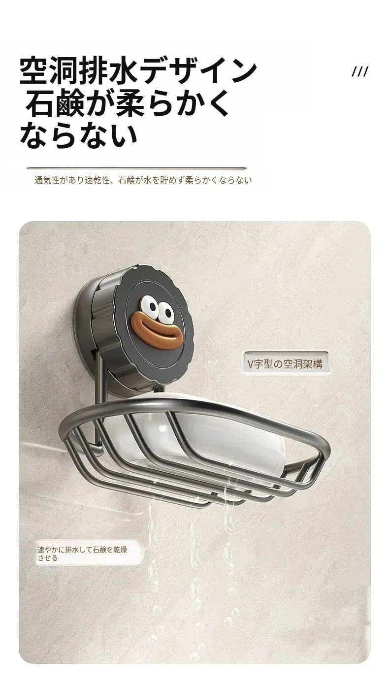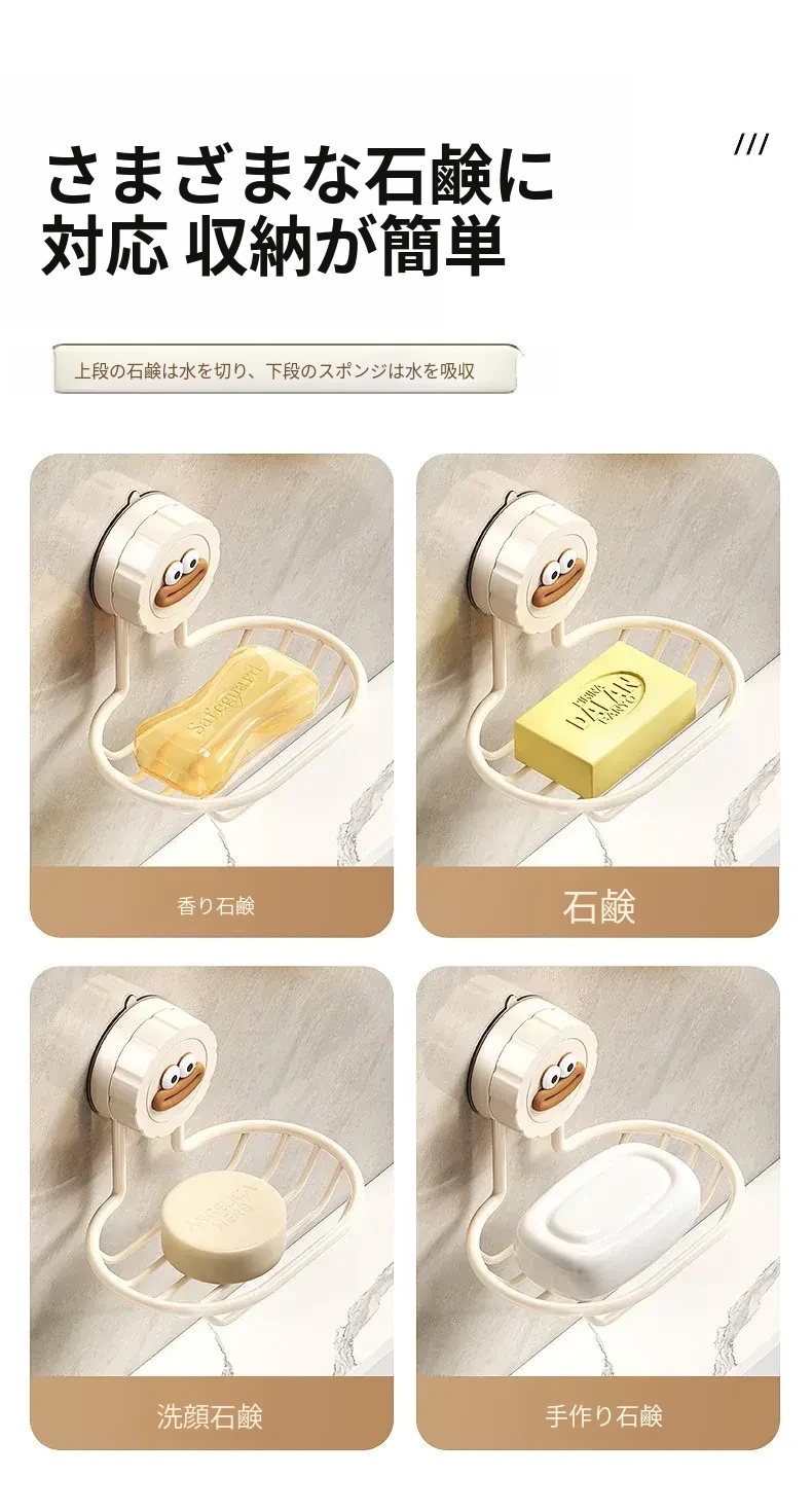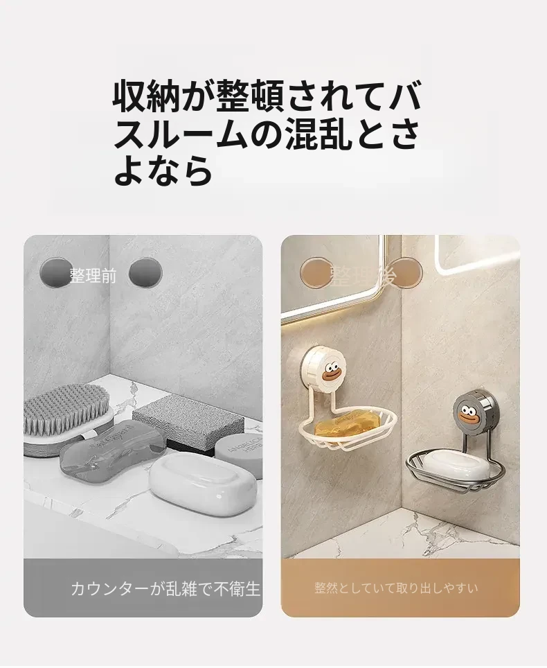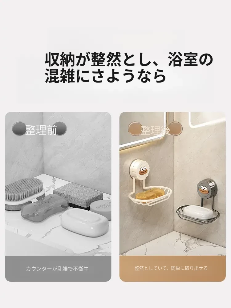 吸盤式ソープホルダー - バスルームでの便利さを実現!壁掛け収納でスペースを有効活用。水切り機能付きで、衛生的に香皂を保管。2026年新モデル、家庭にぴったりなアイテム!