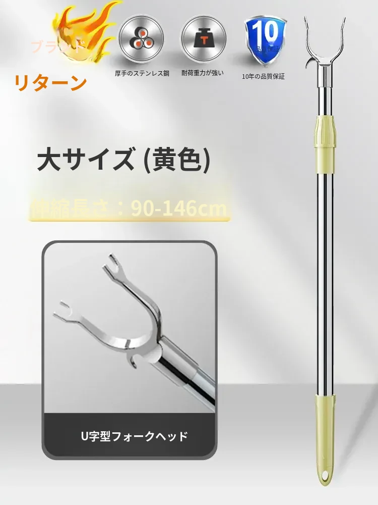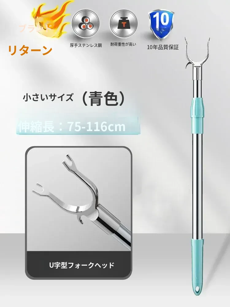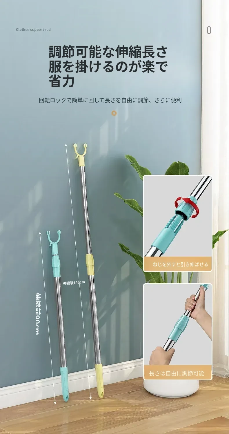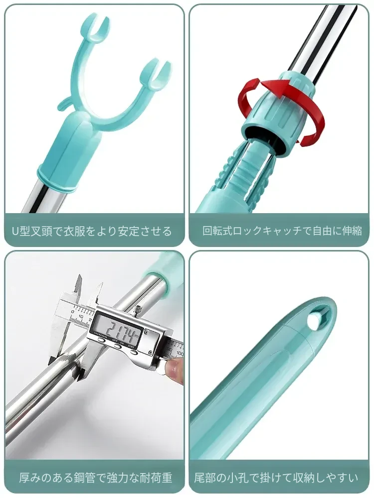 伸縮式ステンレス衣類干しフォーク - 寮や家庭で大活躍!衣類をしっかり支え、風通しも抜群。コンパクトに収納可能で、使わない時も邪魔になりません。洗濯物を快適に干せる便利アイテム!