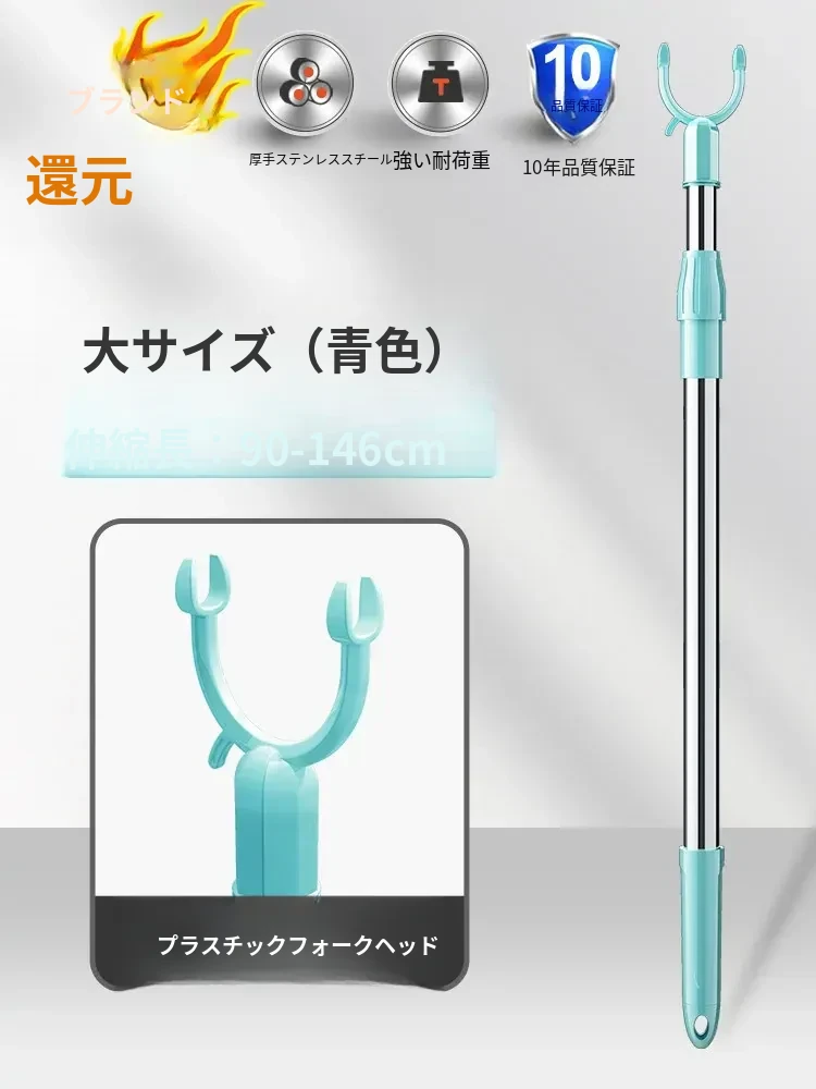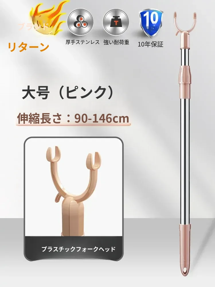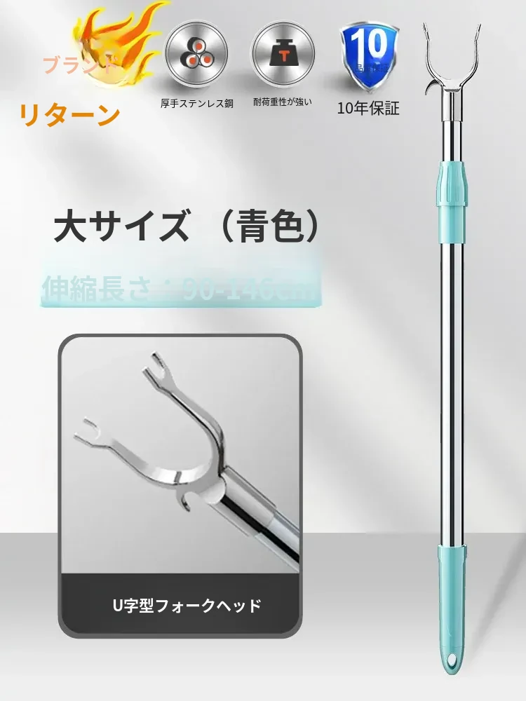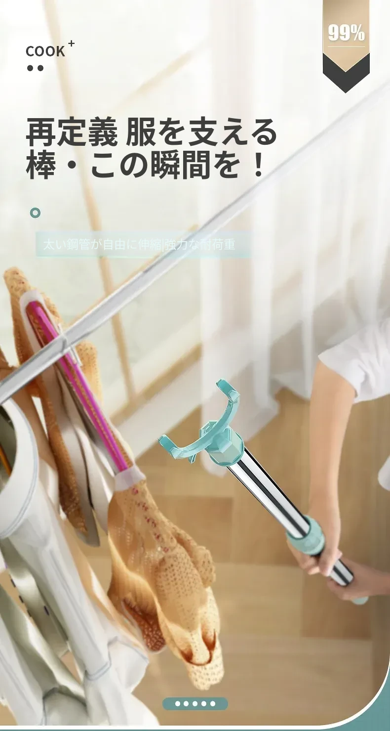 伸縮式ステンレス衣類干しフォーク - 寮や家庭で大活躍!衣類をしっかり支え、風通しも抜群。コンパクトに収納可能で、使わない時も邪魔になりません。洗濯物を快適に干せる便利アイテム!
