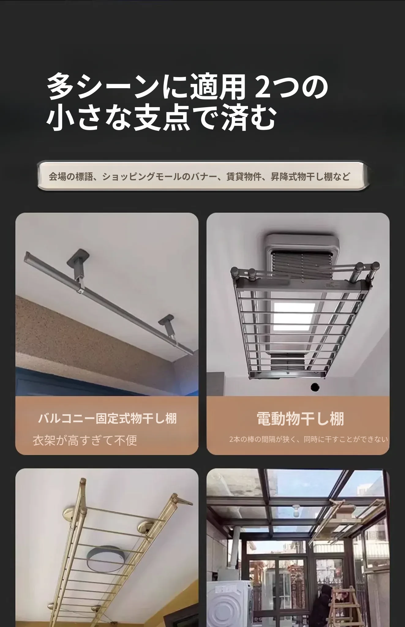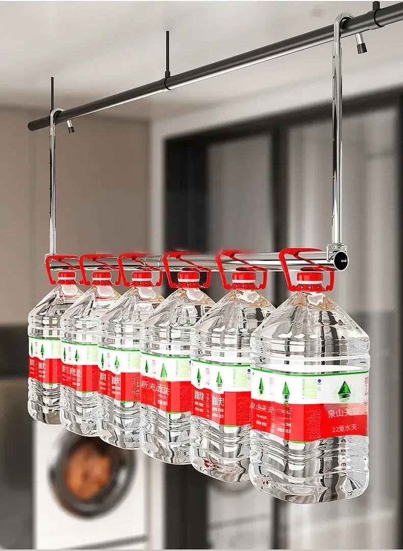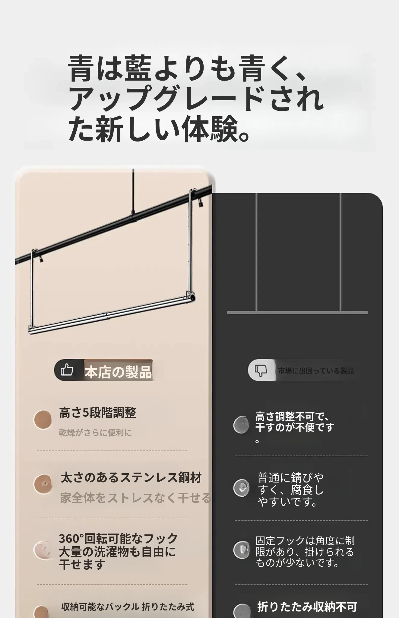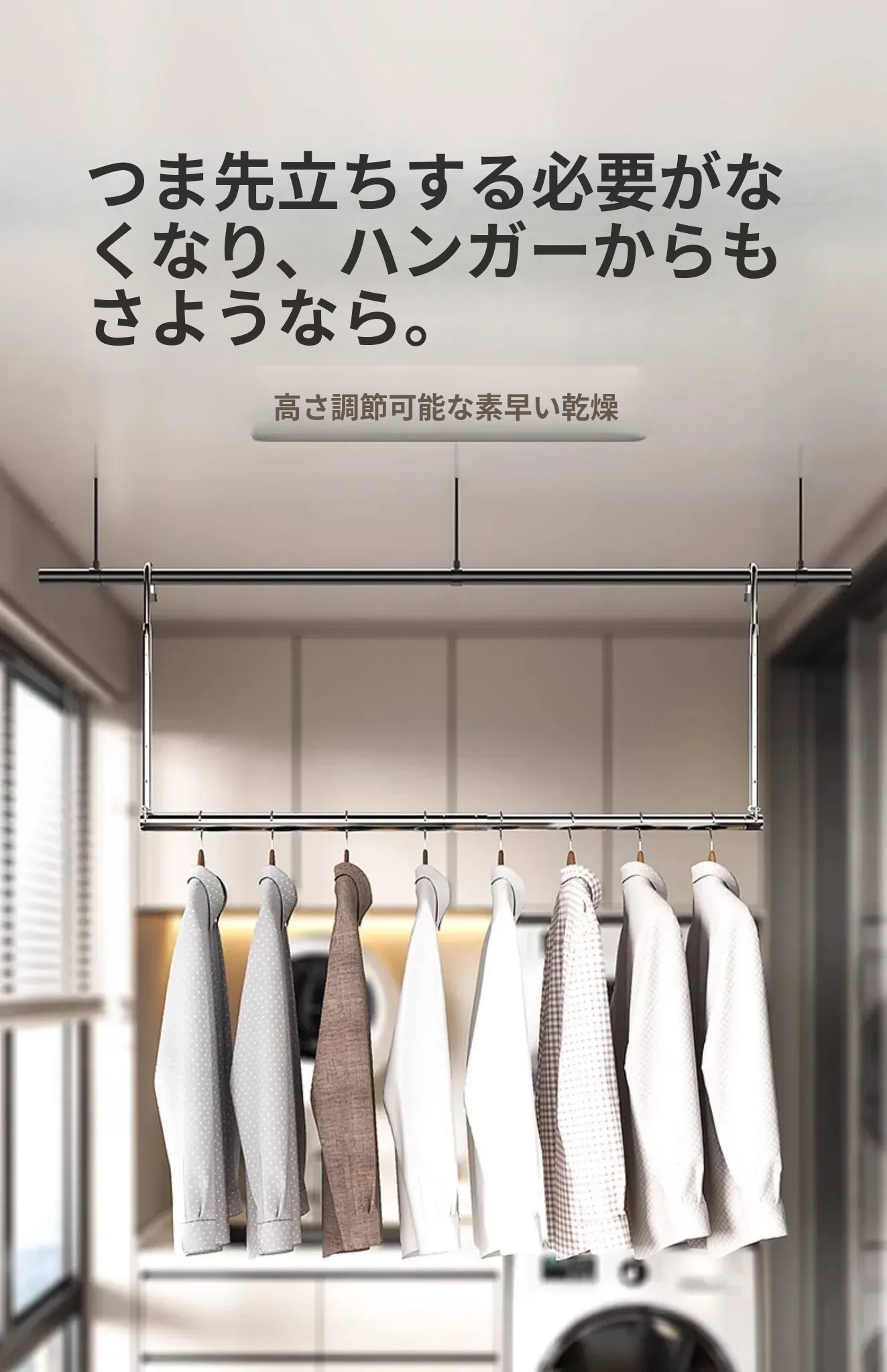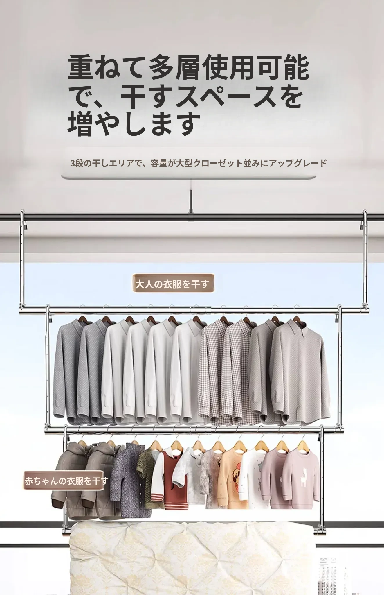 家用バルコニー用伸縮式物干しラック - 穴を開けずに簡単取り付け、昇降式デザインで使いやすい!ステンレス製で耐久性抜群、布団干しにも最適な便利アイテム!