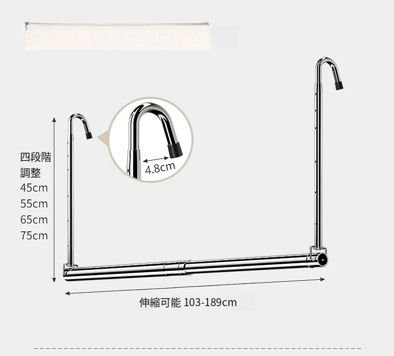 【四段調整】伸縮可能100-190cm【太くて厚いステンレス】