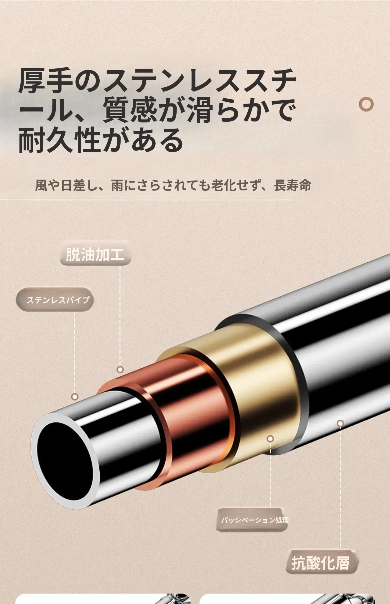 【三段調整】伸縮可能80-150cm【太くて厚いステンレス】