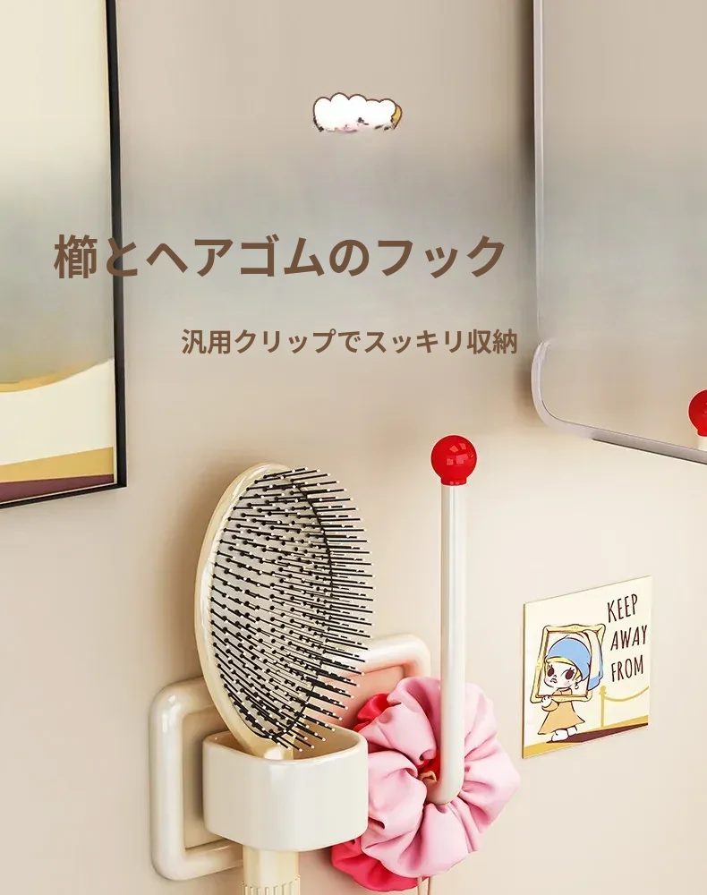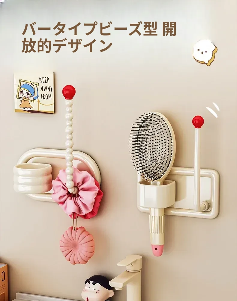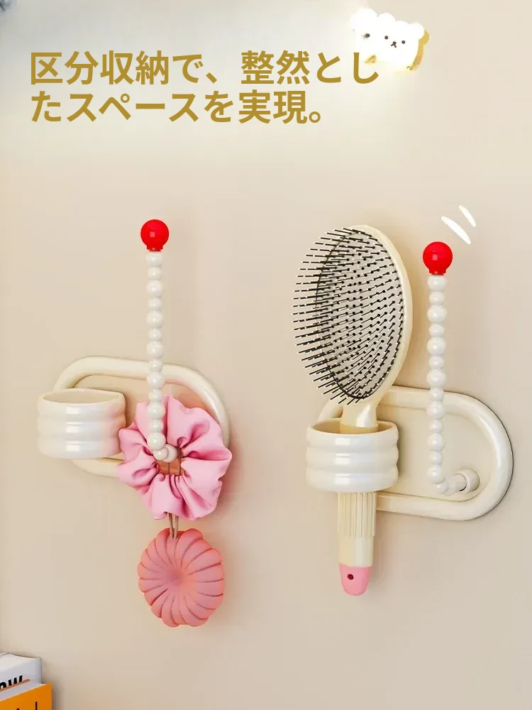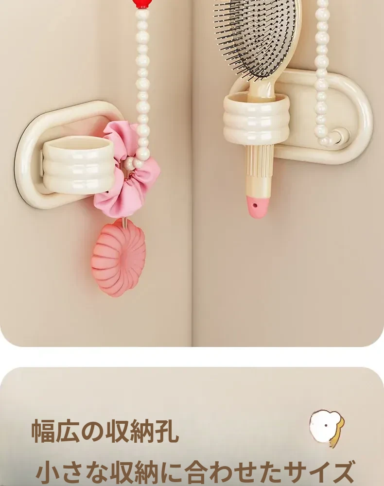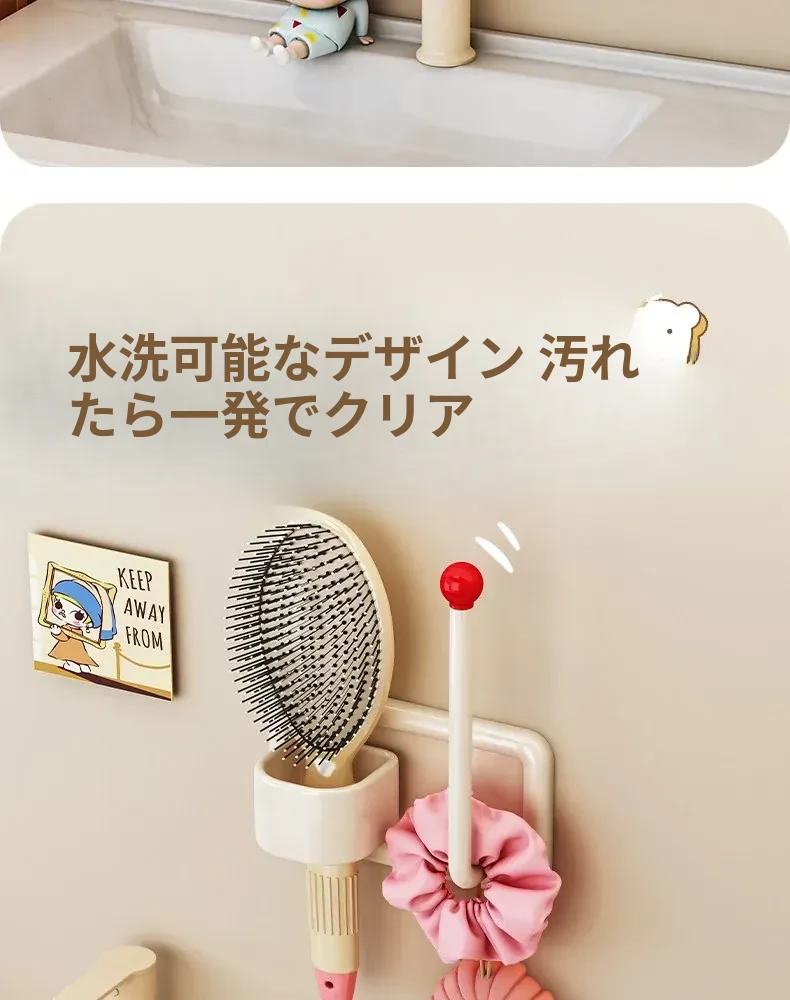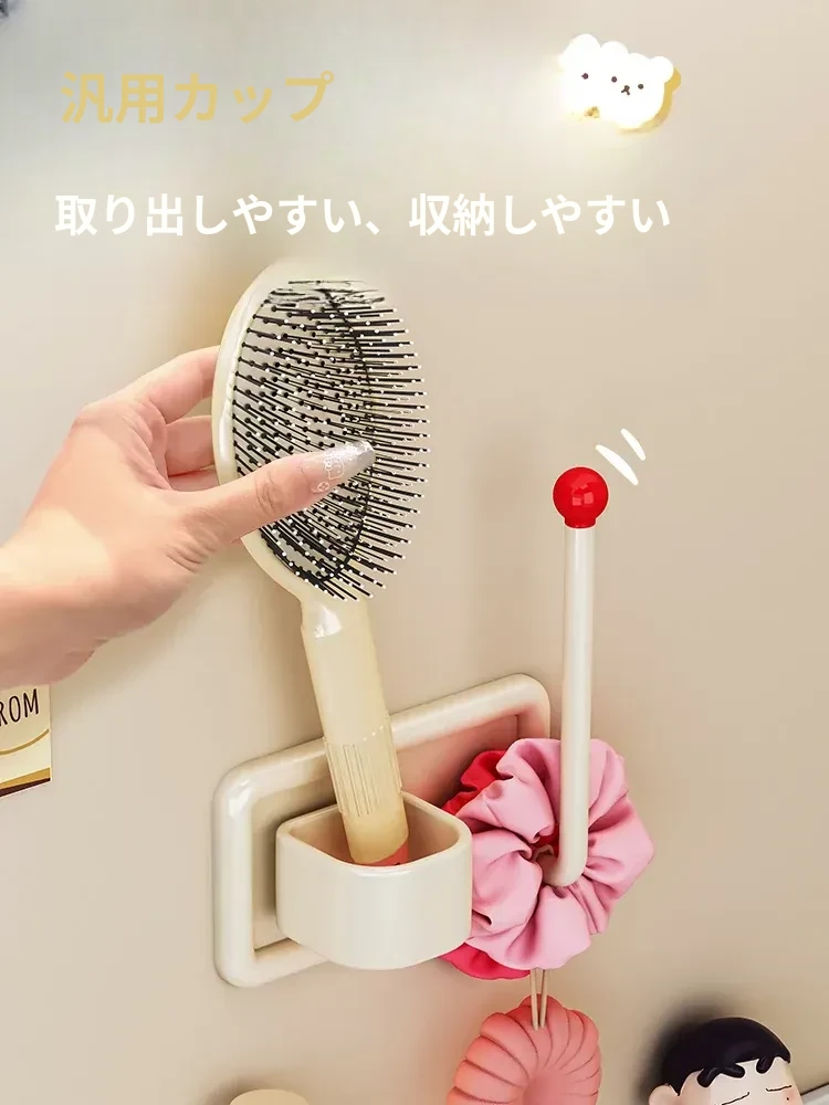 トイレのヘアゴム・ヘアバンド・ブラシ用フック、穴あけ不要の壁掛け収納ラック、バスルームでの便利なアクセサリー整理に最適!おしゃれで機能的な粘着フック付き。