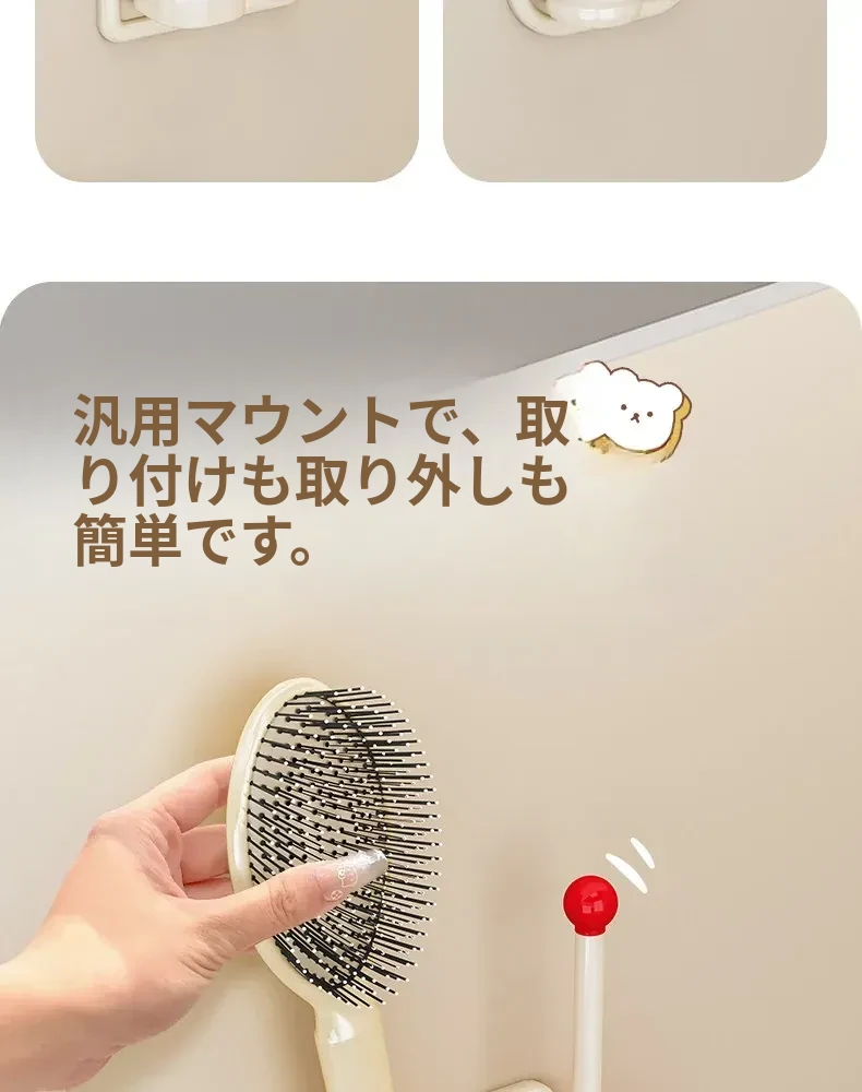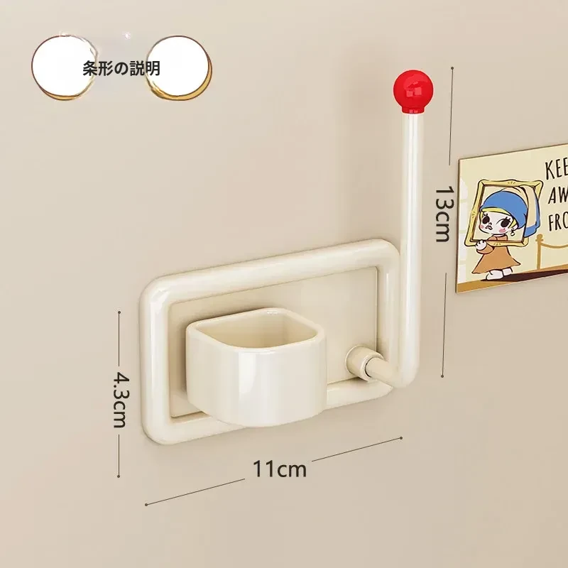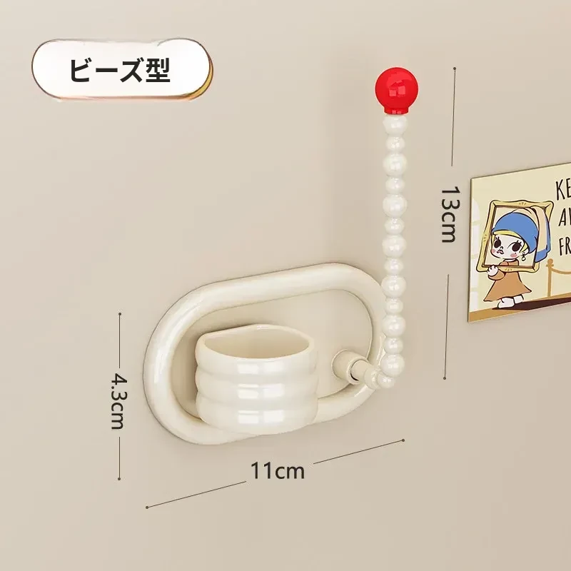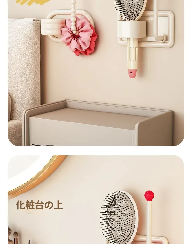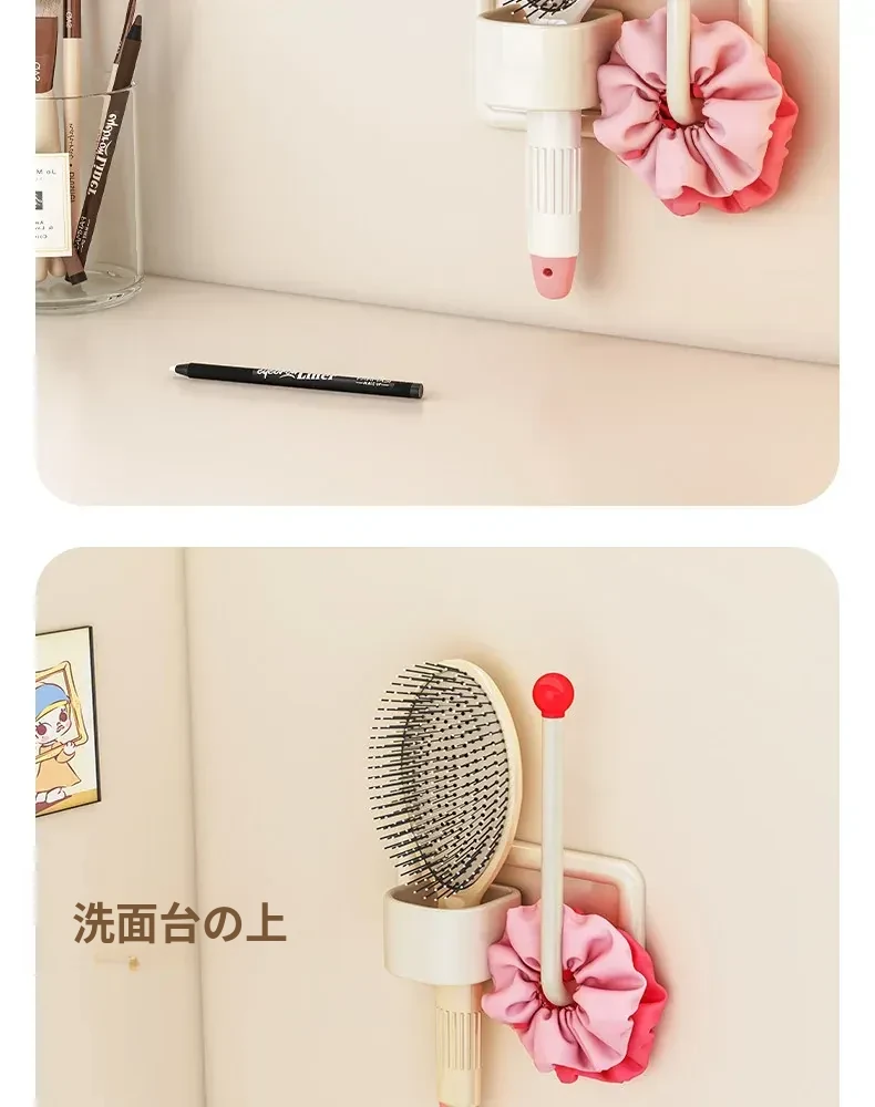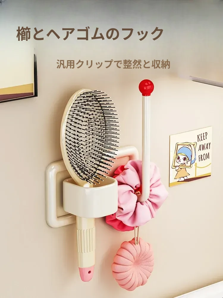 トイレのヘアゴム・ヘアバンド・ブラシ用フック、穴あけ不要の壁掛け収納ラック、バスルームでの便利なアクセサリー整理に最適!おしゃれで機能的な粘着フック付き。