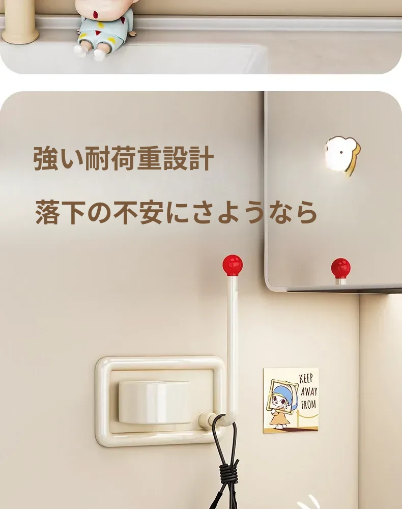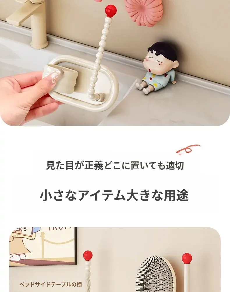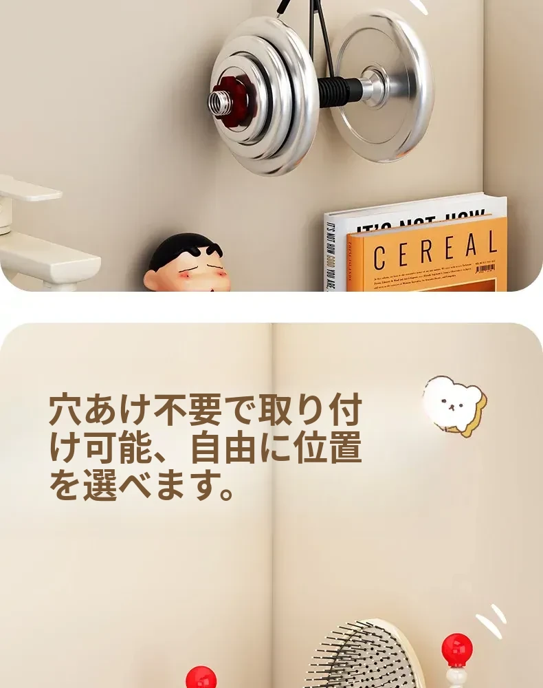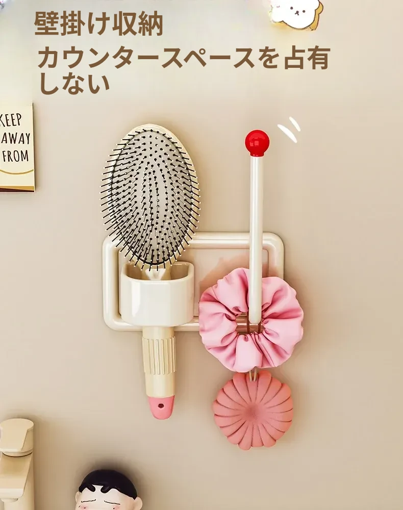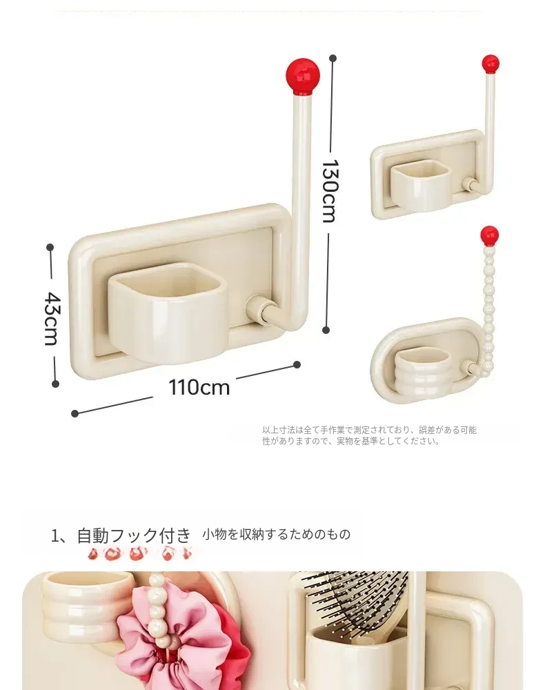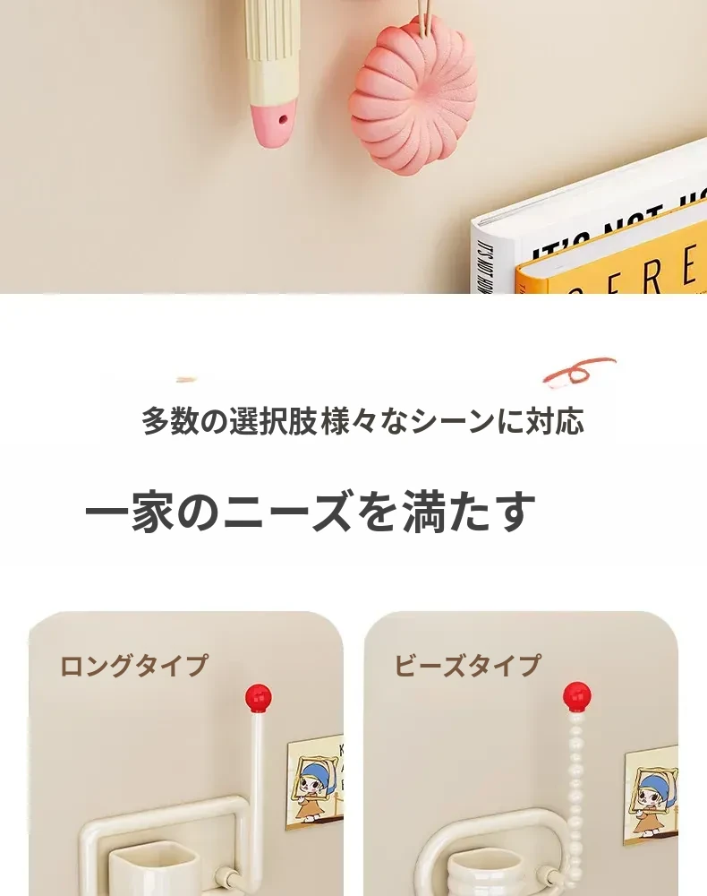 トイレのヘアゴム・ヘアバンド・ブラシ用フック、穴あけ不要の壁掛け収納ラック、バスルームでの便利なアクセサリー整理に最適!おしゃれで機能的な粘着フック付き。