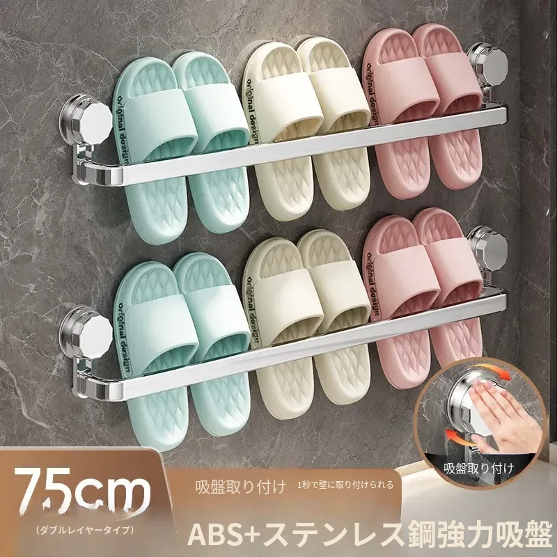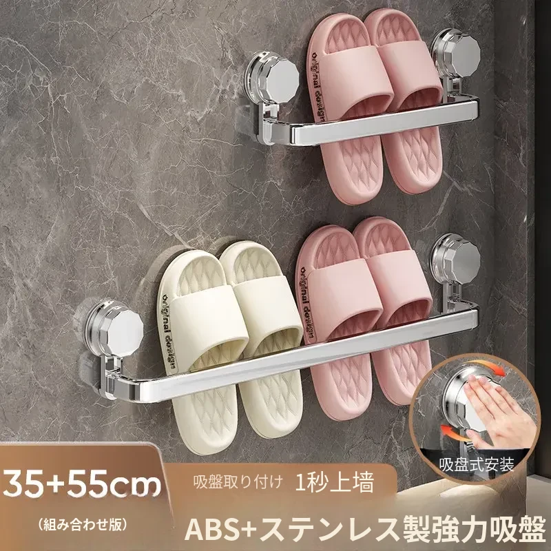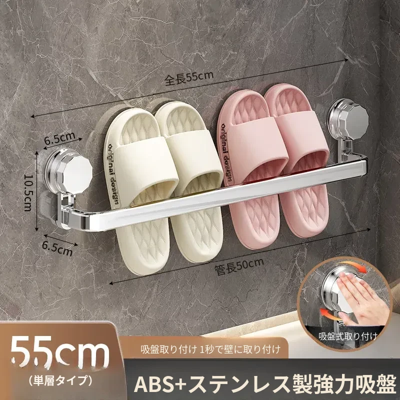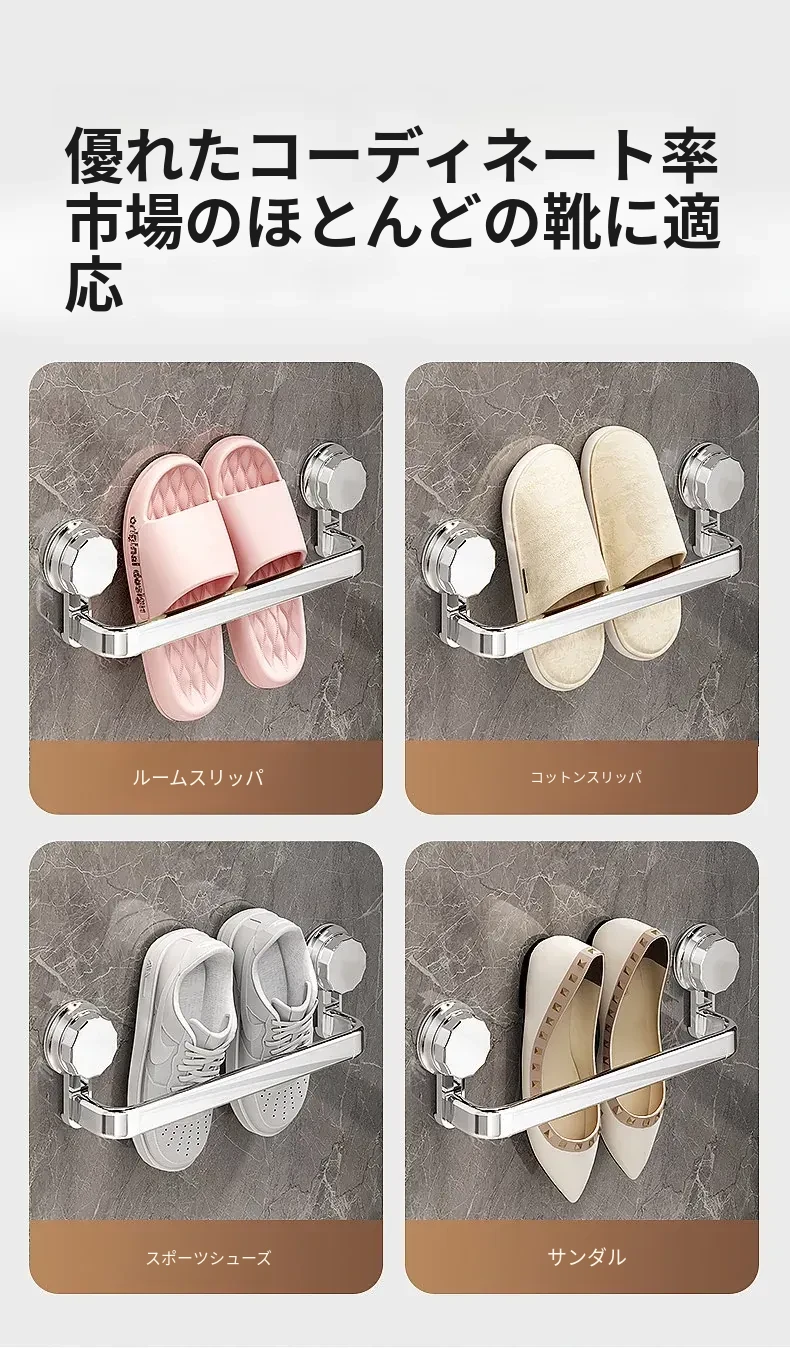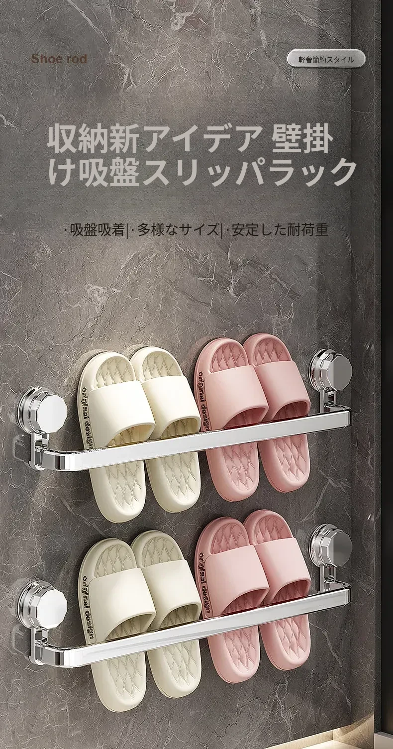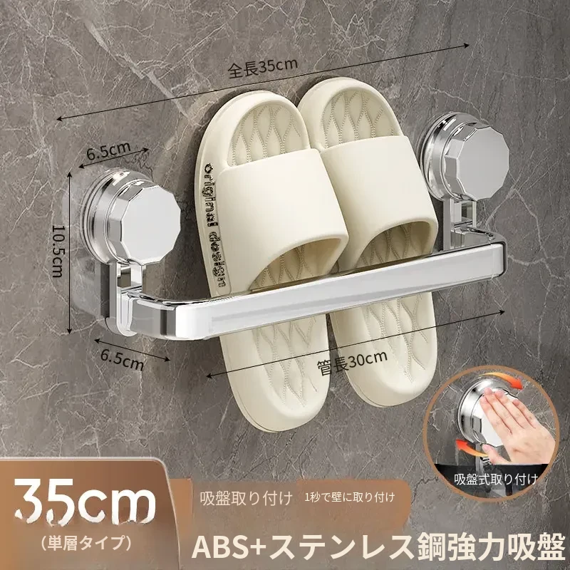 浴室用吸盤付きスリッパラック|壁掛けで簡単設置!穴あけ不要の便利収納|トイレや洗面所に最適な水切り機能付き靴収納アイテム!