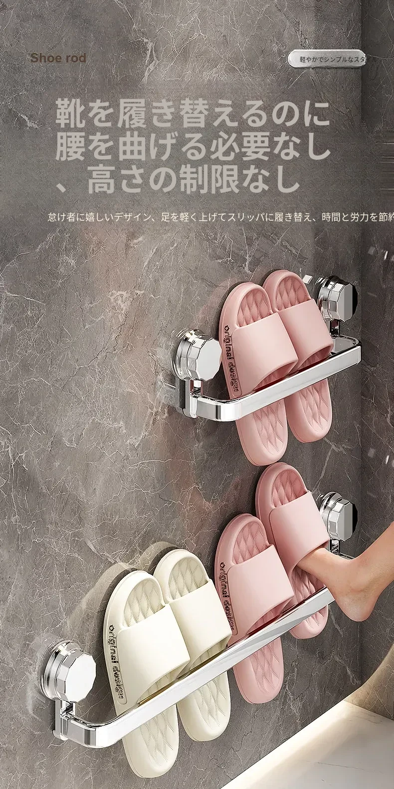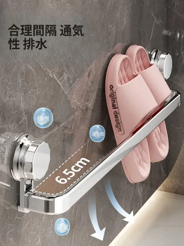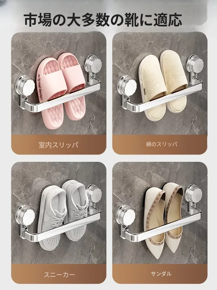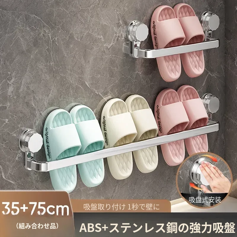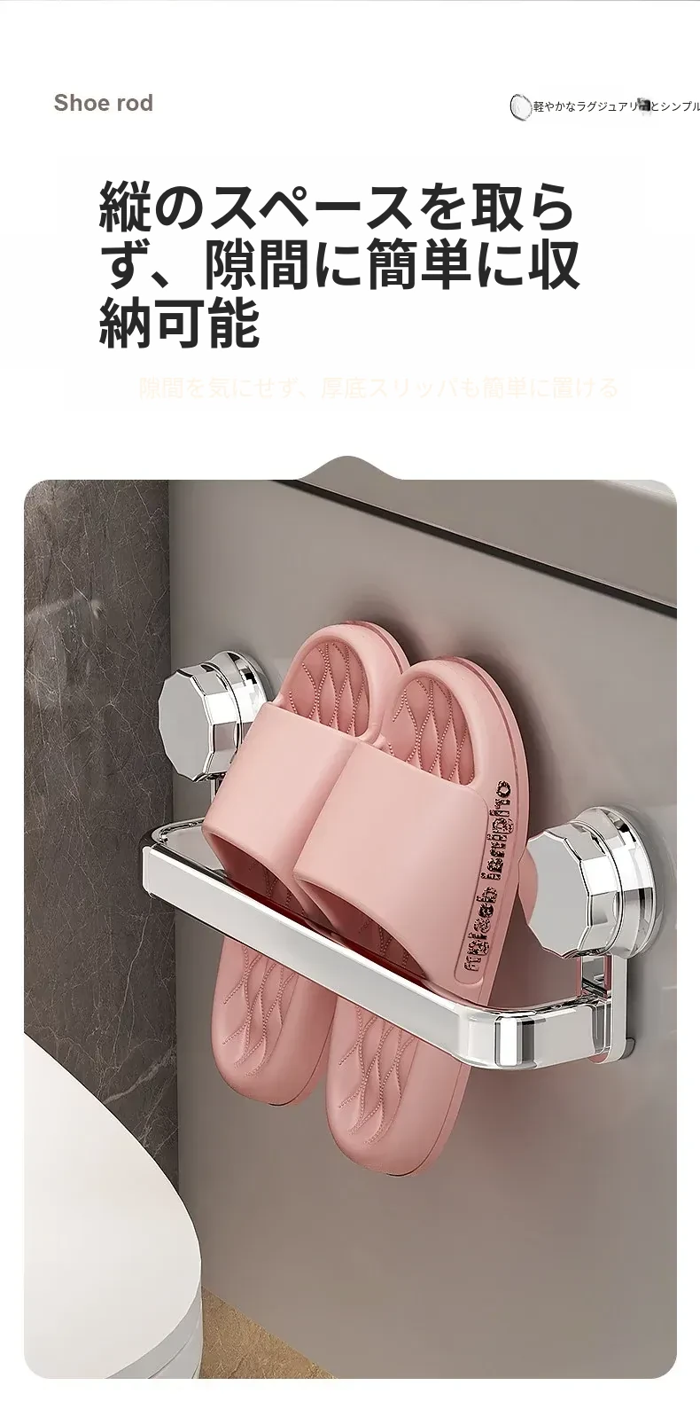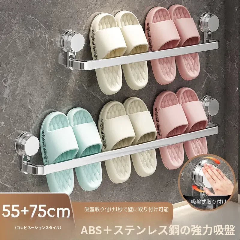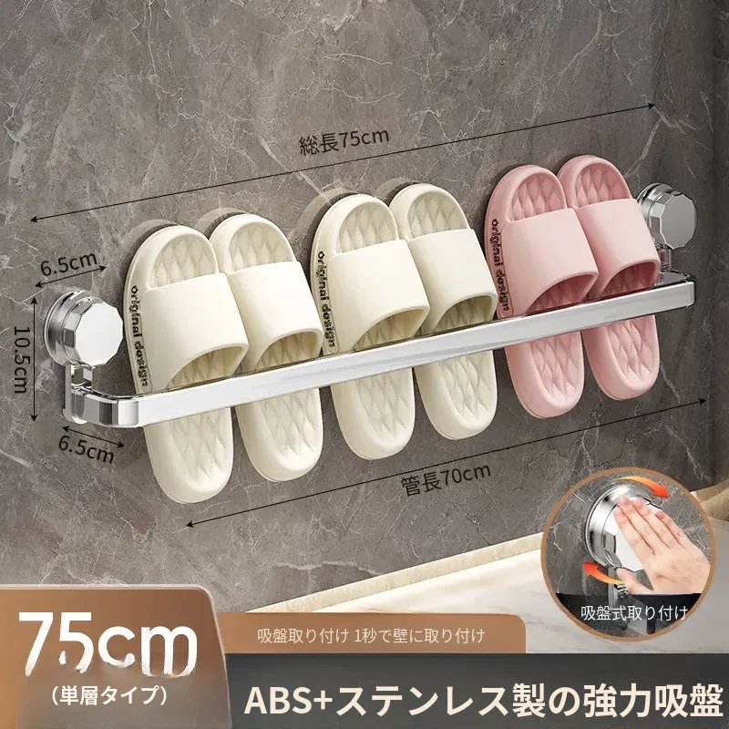 浴室用吸盤付きスリッパラック|壁掛けで簡単設置!穴あけ不要の便利収納|トイレや洗面所に最適な水切り機能付き靴収納アイテム!